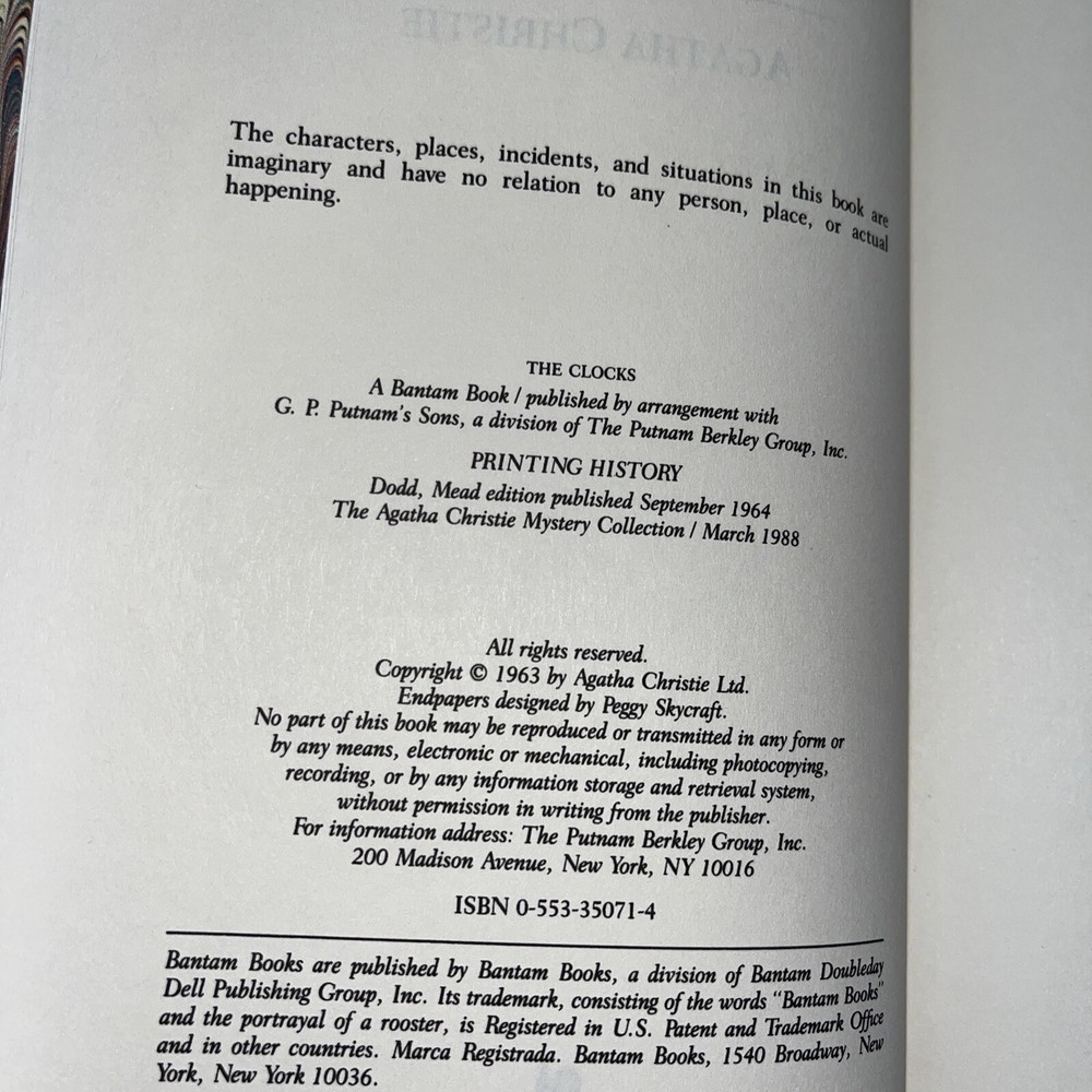 This Vintage Leather Bound Agatha Christie book titled "The Clocks" is a must-have for every book collector. Published by Bantam Books in New York, this Original edition is a rare find and perfect addition to your literature and fiction library. The book features a Mystery and Thriller topic, written in English. It also comes with a special attribute of being a Collector's Edition, making it a valuable item for any collector. The book is bound in high-quality leather, making it not only a good read but also an elegant display piece. This book is perfect for those who appreciate the beauty of timeless literature.