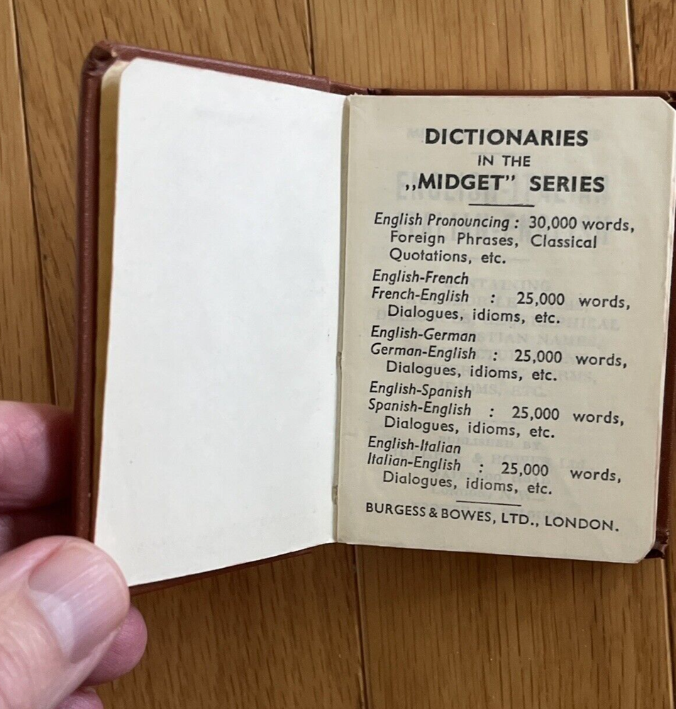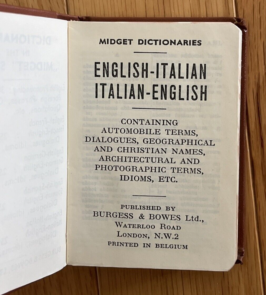 Vintage Midget Series Pocket Dictionary English Italian Mini Burgess & Bowes