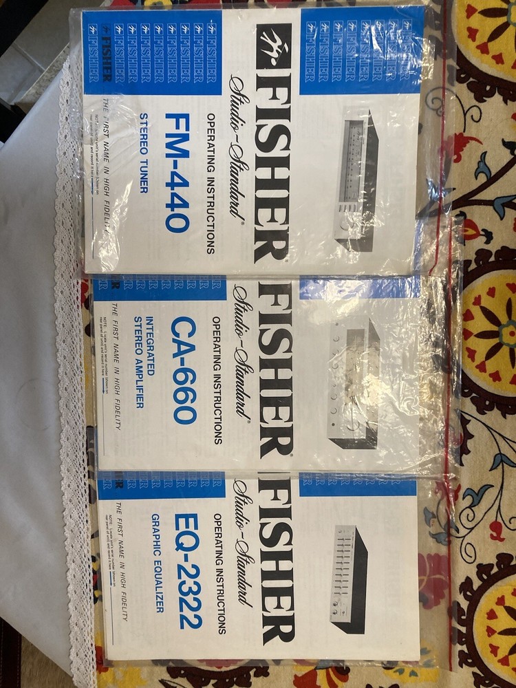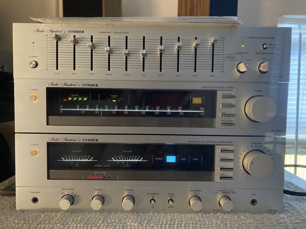 Vintage Studio Standard by Fisher CA- 660, FM-440 , EQ-2322 Rare Set. System comprised of: 1. FM-440 Stereo Tuner with Operating Instructions (A $20.00 value). 1. CA-660 Integrated Stereo Amplifier with Operating Instructions (A $15.00 value). 1. EQ-2322 Graphic Equalizer with Operating Instructions (A $20.00 value). NO SPEAKERS INCLUDED.
