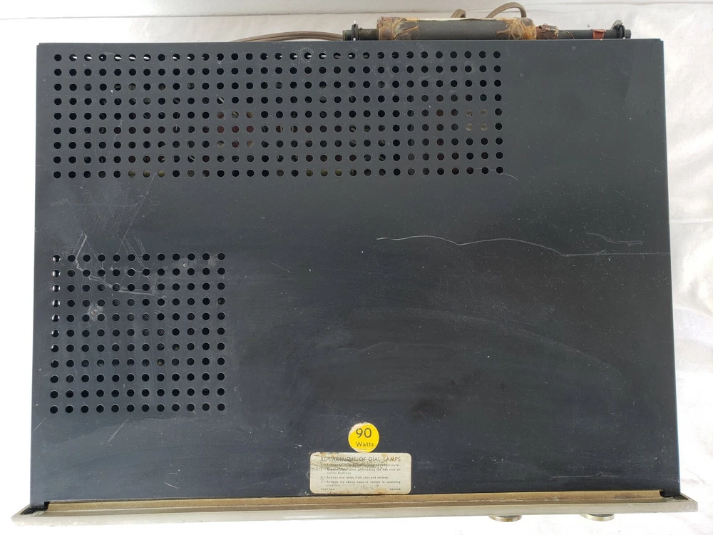 Does have lots of wear due to its age, but no major dents or damage. Frame is perfectly intact. Please use zoom to examine all areas closely. Has been thoroughly inspected and tested by our vintage audio technician and everything works great. The radio and other inputs produce clear and powerful sound. We listened for hours and did not detect any hums or distortions. Will be packed very securely for safe delivery. We have many years of experience shipping vintage audio equipment. Thank you for viewing!