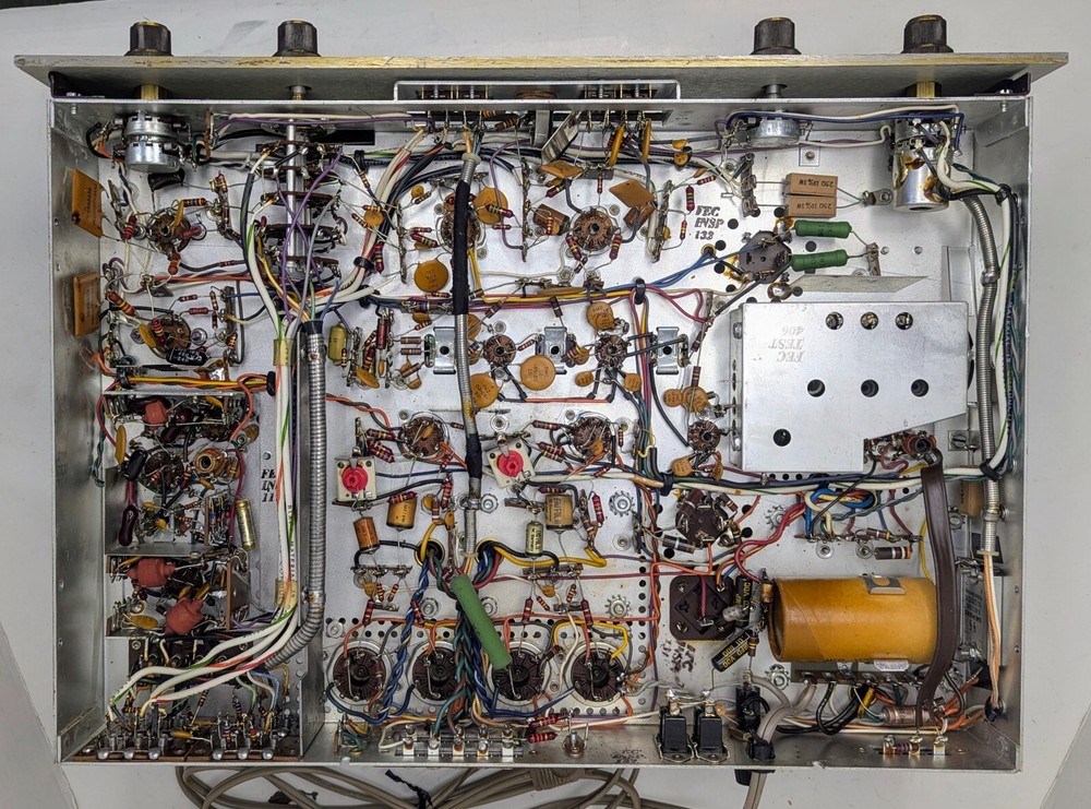 Turns on, lamps work, tubes light up, and it outputs sound but was not tested any further as there was a smell after a few minutes...