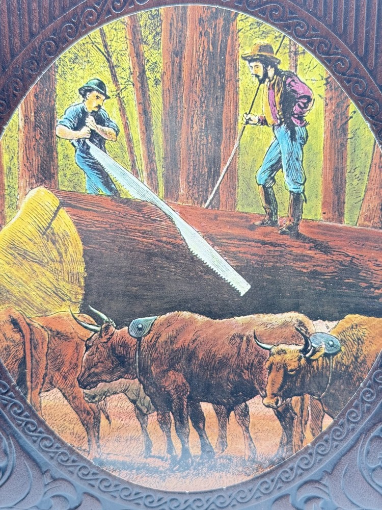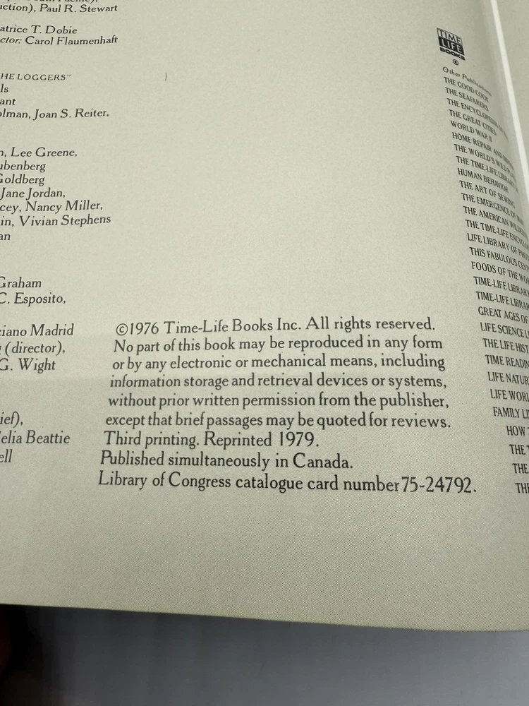 Delve into the rich tapestry of American history with "The Loggers," a compelling hardcover volume from the esteemed Time Life Books Series. Published in 1979, this picture book offers a vivid glimpse into the rugged world of the Old West, meticulously researched by Richard Williams. Its pages are a tribute to the adventurous spirit and resilience of the loggers who shaped America's landscape. "The Loggers" is a treasure for both young adults and adults alike, providing an educational yet engaging read. With its faux leather binding, this book is a testament to the craftsmanship of its era. It's a nonfiction narrative that brings history to life, perfect for anyone interested in Western genre literature or American historical accounts.