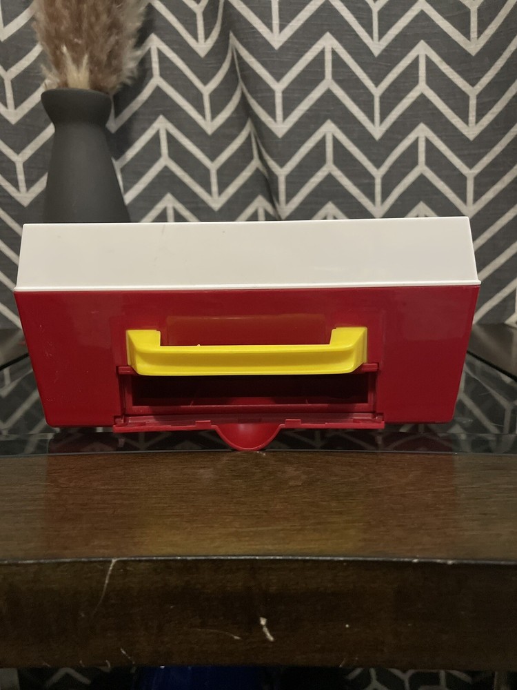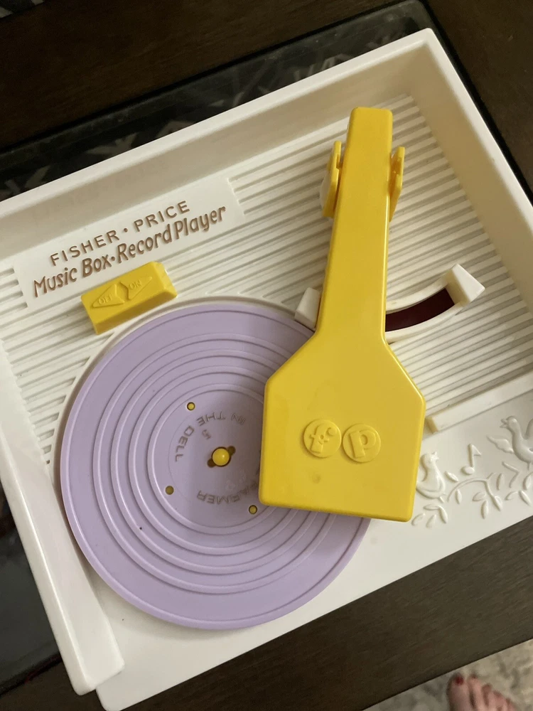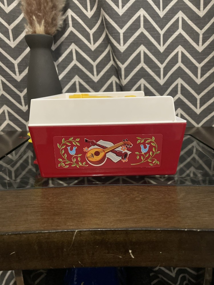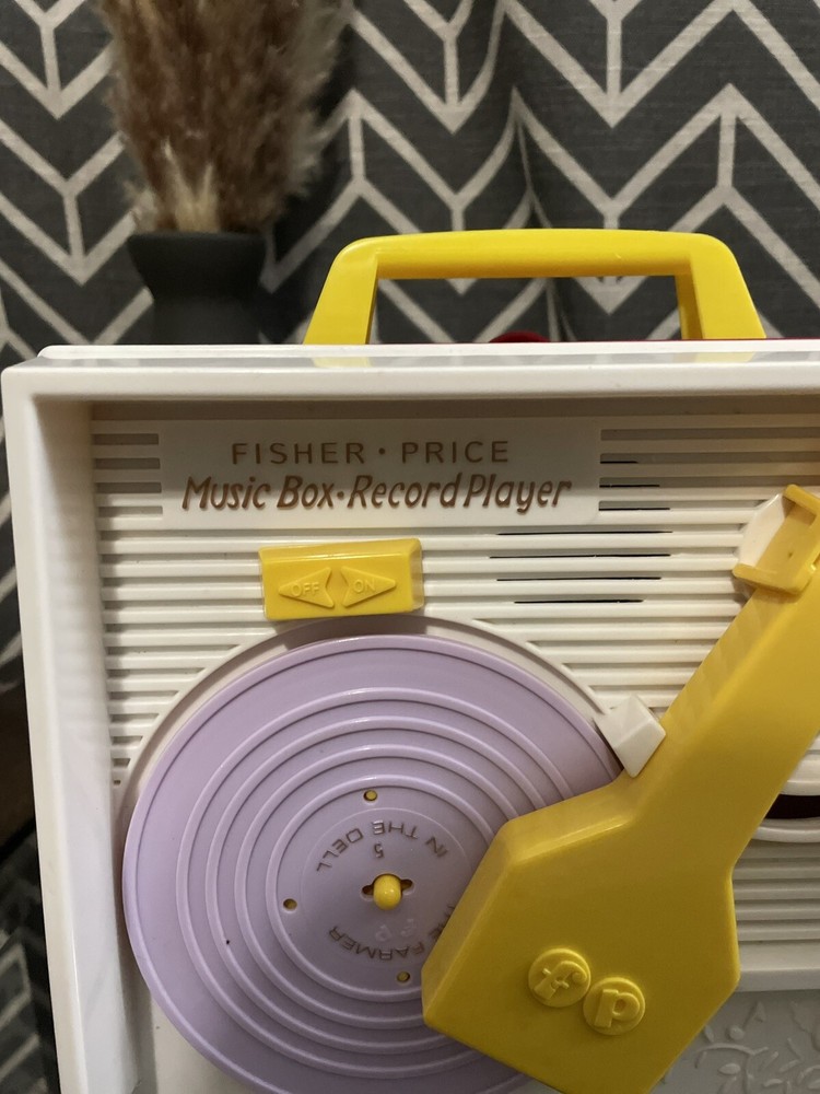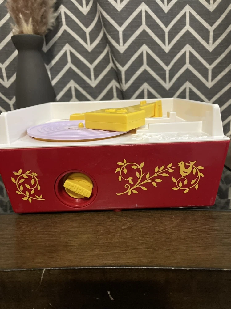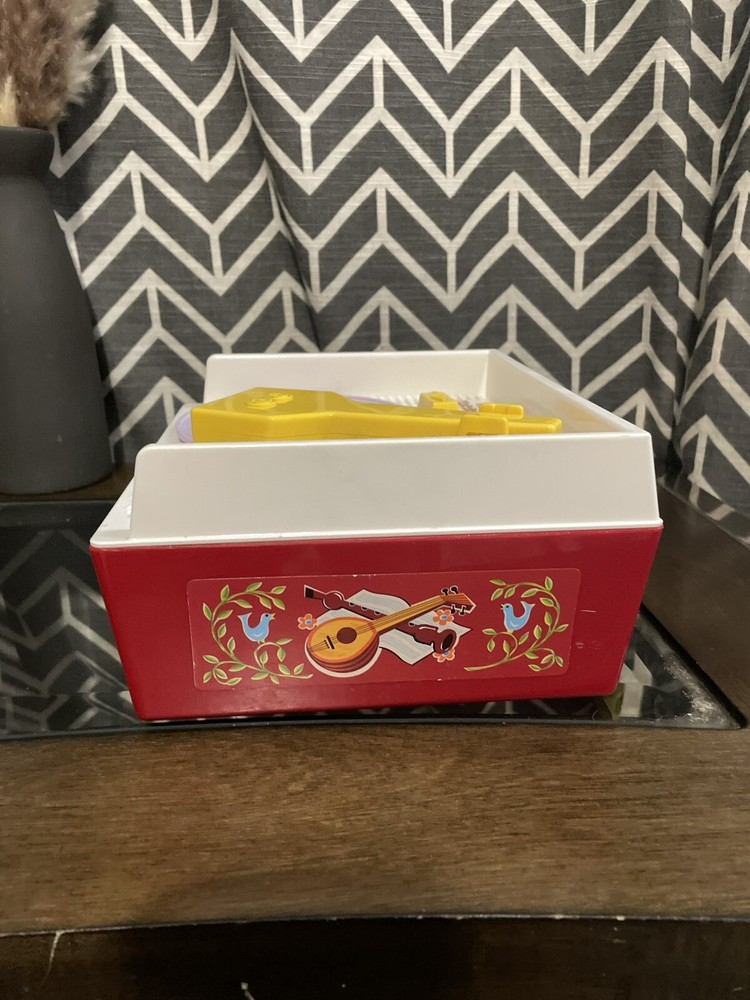 This vintage Fisher-Price music box from 1971 is a great addition to any collection! It's a record player that turns on and plays music, perfect for any music lover. The design is classic and timeless, making it a great conversation piece for any home. This music box was made in the United States and features the iconic Fisher-Price brand. It's a great gift for children and adults alike, perfect for anyone who loves music and vintage toys. Don't miss out on this unique piece of history!