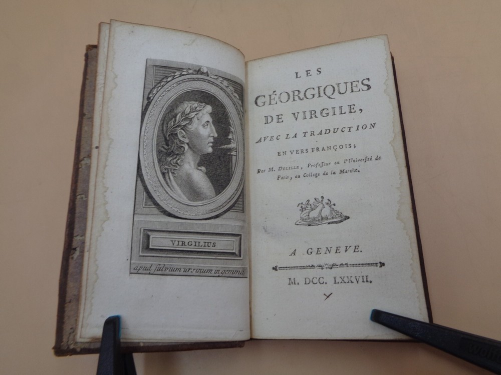 VIRGIL The Georgics Geneva, 1777 Full sheepskin (12x7cm), 191 pages, frontispiece Rubbed binding with missing caps and corners, stitching on the spine VIRGIL The Georgics Geneva, 1777 Full sheepskin (12x7cm), 191 pages, frontispiece Rubbed binding with missing caps and corners, stitching on the spine