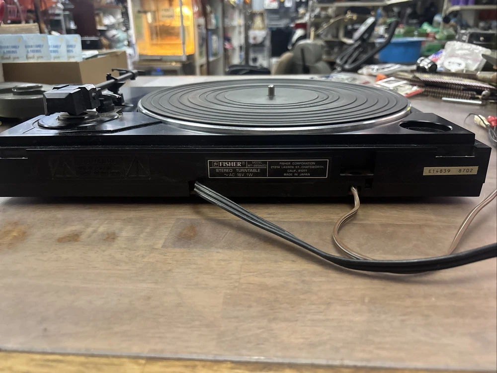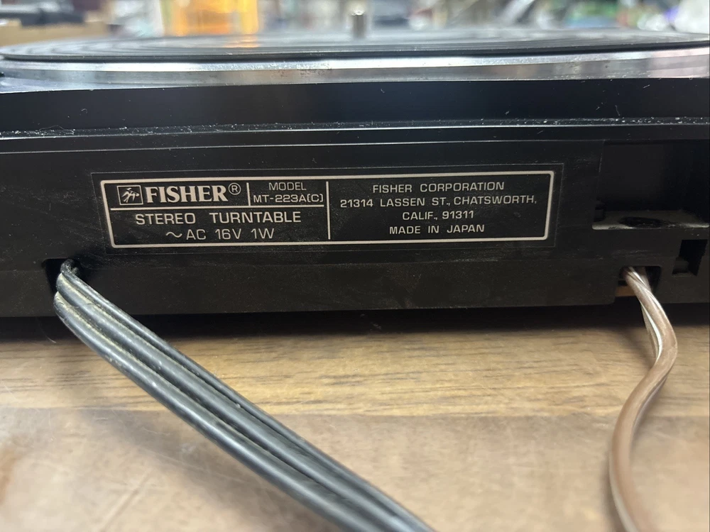 You are purchasing a non-working Fisher turntable, model MT-223A. I cannot get it to turn. Do not know what is wrong with it. Selling for parts only See pictures