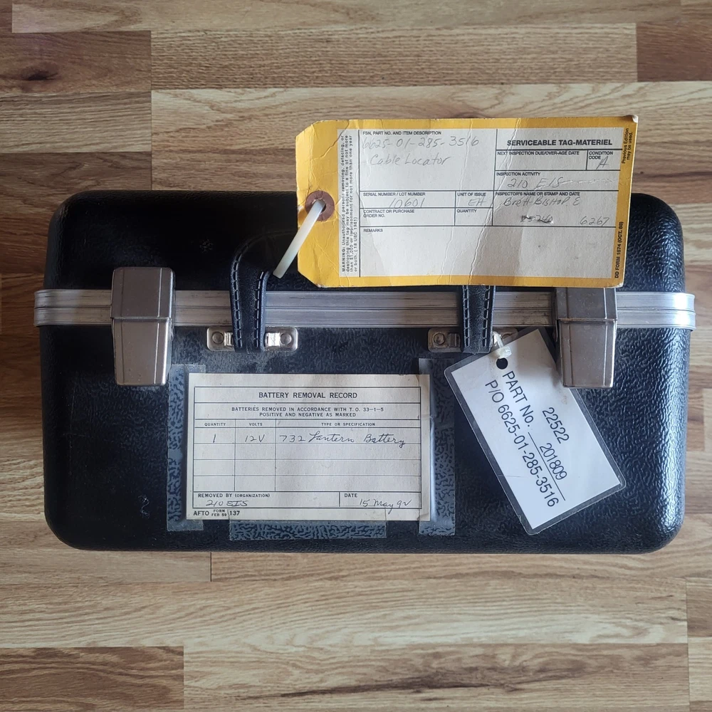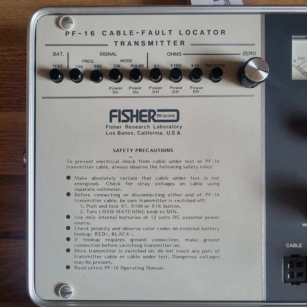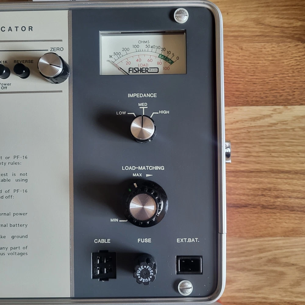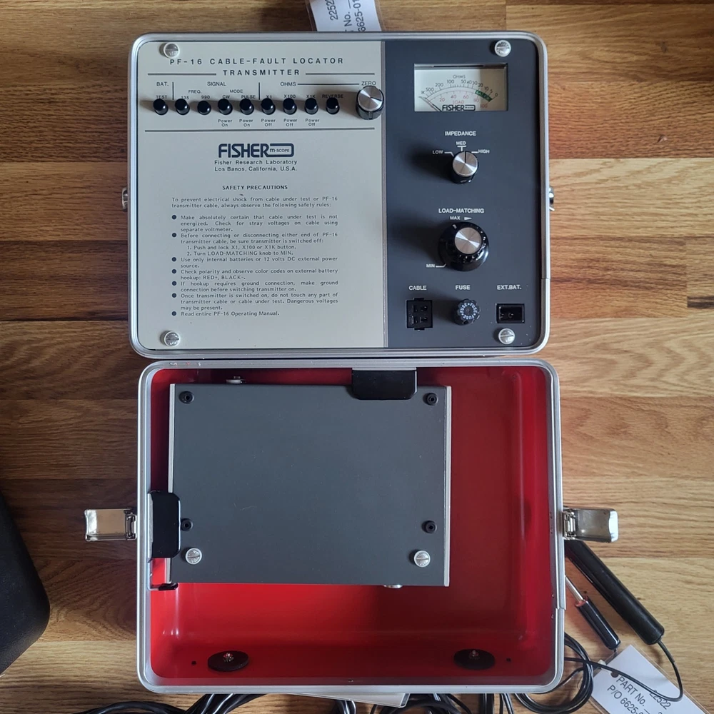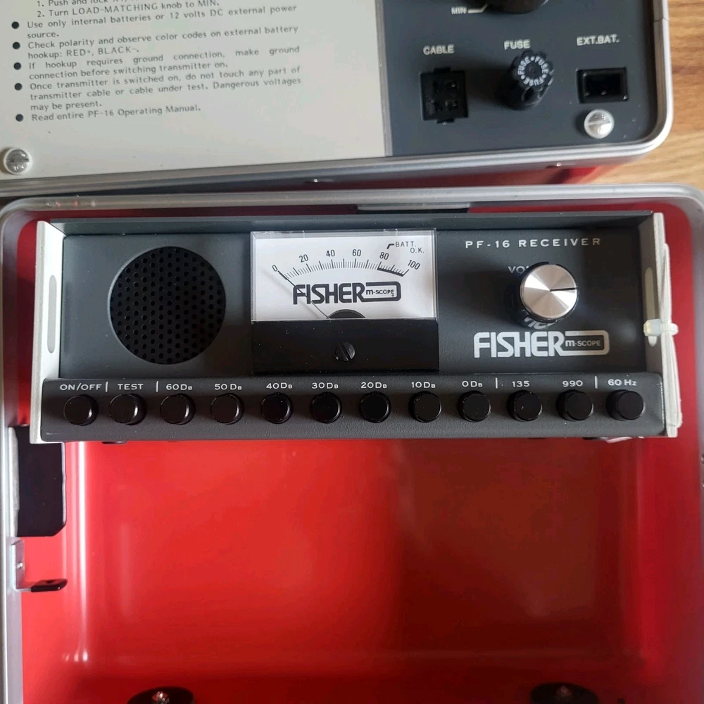 Vtg Fisher M-scope PF-16 Cable Fault Locator Transmitter Receiver Kit Inspected with tags. There are no signs of use, all tags and labels on each item. All equipment is immaculate. Several cables, carrying strap, full protective carrying case. Case has some surface scuffs, dusty and there's a small amount of surface corrosion on clasps. Has been carefully stored in a climate controlled area. See photos for details and measurements. Sold as is, buyer pays shipping, seller may substitute carriers with equal service to meet ebays calculated cost, will combine shipping upon request.