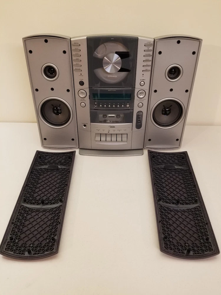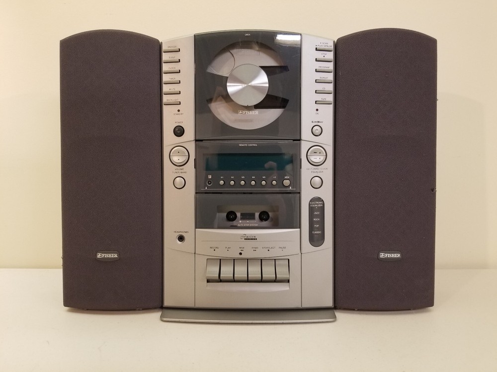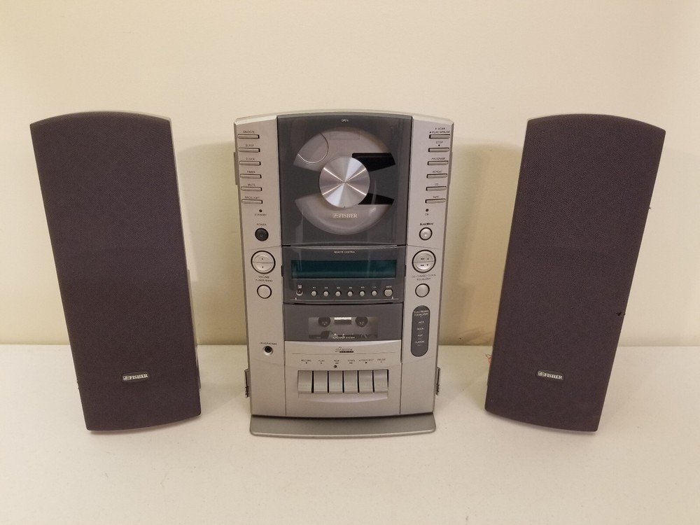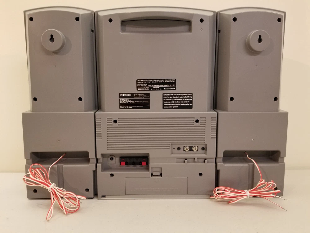 Vtg. 1998 Fisher SLIM-1000 AM/FM Radio CD Cassette w/Detachable Speakers & Wall Mount RARE. Unit is in excellent cosmetic condition. Unit is fully functional and sounds great. The clock lights up but is very dim. Tape capstan roller has some cracks in it but they don't seem to affect tape playback at all. Remote is also missing from this unit. SEE DEMO VIDEO AND PICS FOR MORE DETAILS. Unit comes with AC adapter and wall mount bracket. Nice vintage piece from Fisher from the late 90s. Relive the nostalgia! Any questions feel free to ask! NOTE: ITEM YOU RECEIVE WILL BE AS STATED ABOVE. HOWEVER, AS WITH ALL VINTAGE ELECTRONICS ITEMS, DUE TO AGE, ANYTHING CAN GO WRONG WITH THEM AT ANY TIME, THEREFORE THIS ITEM IS BEING SOLD AS IS.