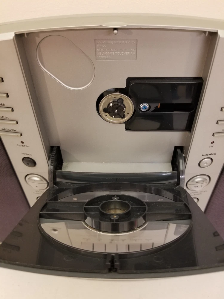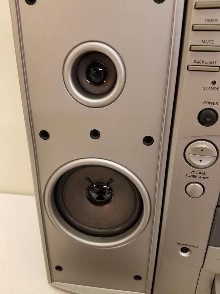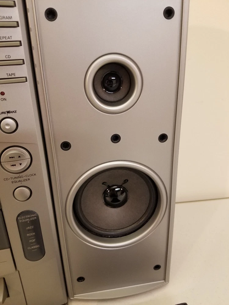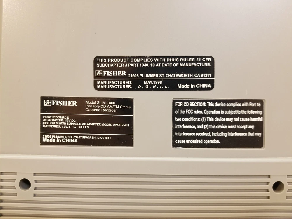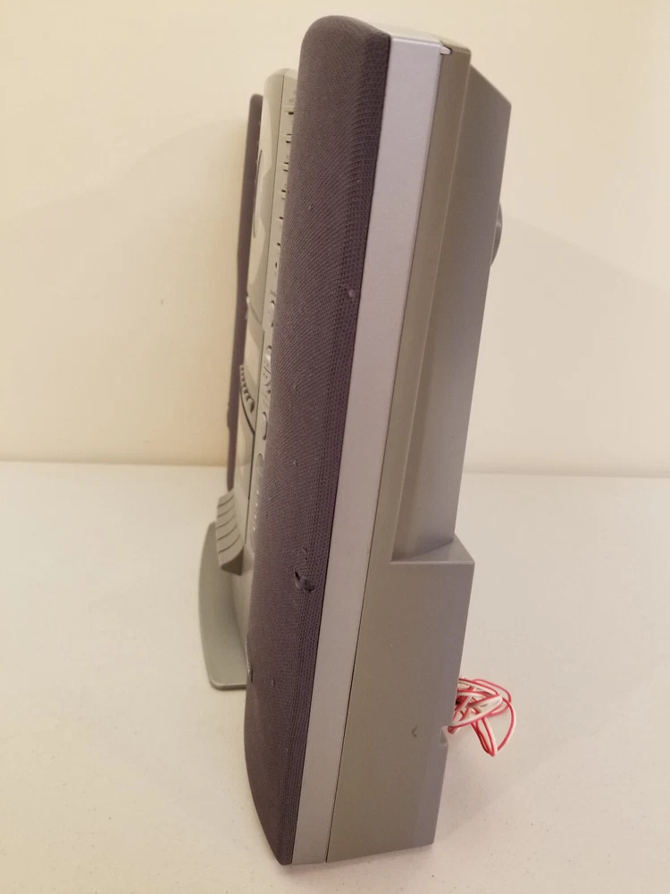 Vtg. 1998 Fisher SLIM-1000 AM/FM Radio CD Cassette w/Detachable Speakers & Wall Mount RARE. Unit is in excellent cosmetic condition. Unit is fully functional and sounds great. The clock lights up but is very dim. Tape capstan roller has some cracks in it but they don't seem to affect tape playback at all. Remote is also missing from this unit. SEE DEMO VIDEO AND PICS FOR MORE DETAILS. Unit comes with AC adapter and wall mount bracket. Nice vintage piece from Fisher from the late 90s. Relive the nostalgia! Any questions feel free to ask! NOTE: ITEM YOU RECEIVE WILL BE AS STATED ABOVE. HOWEVER, AS WITH ALL VINTAGE ELECTRONICS ITEMS, DUE TO AGE, ANYTHING CAN GO WRONG WITH THEM AT ANY TIME, THEREFORE THIS ITEM IS BEING SOLD AS IS.
