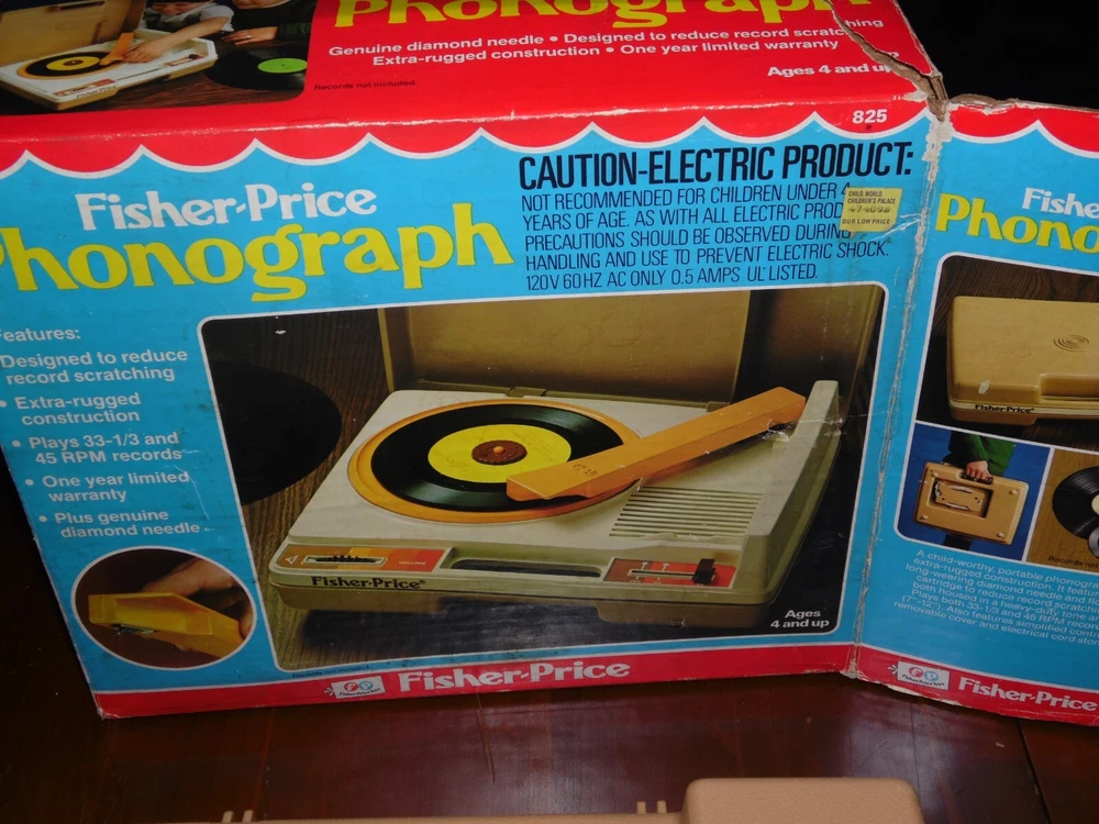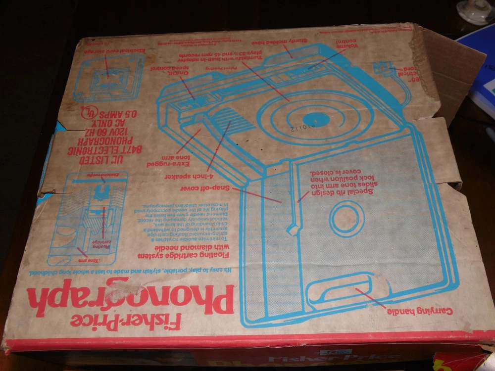 Vtg Fisher-Price Phonograph Record Player 825 w Original Box - Tested Working Box is not in the best shape has the original instructions see video to see the table spin makes a humming noise when spinning I do not have any records to test how it plays only tested for power and to see if it spins decals are loose and lifting off needs cleaned.... has what might be crayon marks see photos fedex and USPS as shipping options .... you choose what works for you photos are part of the description Shipping in the continental US only.... any and all books, manuals, leaflets, magazines are sent via media mail which I have seen at times take up to a month to be delivered. If you wish faster shipping, please contact me and I will give you a shipping quote for priority mail. If you are an international buyer please contact me if you are interested in an item and I will add ebay's global shipping program to the listing for you About me: I shop estate sales and various auctions. I try to give as much information about what I'm selling as I can, but I do not know the entire history of the items that I purchase. I also cannot guarantee that they came from smoke free homes. Please feel free to ask any questions about the items and I will answer as best that I can. I usually answer questions in the evening.... I try to ship items as quickly as possible (day after payment usually) but I have a 2 day handling time on all items just in case something comes up and I'm out of town for a couple days.