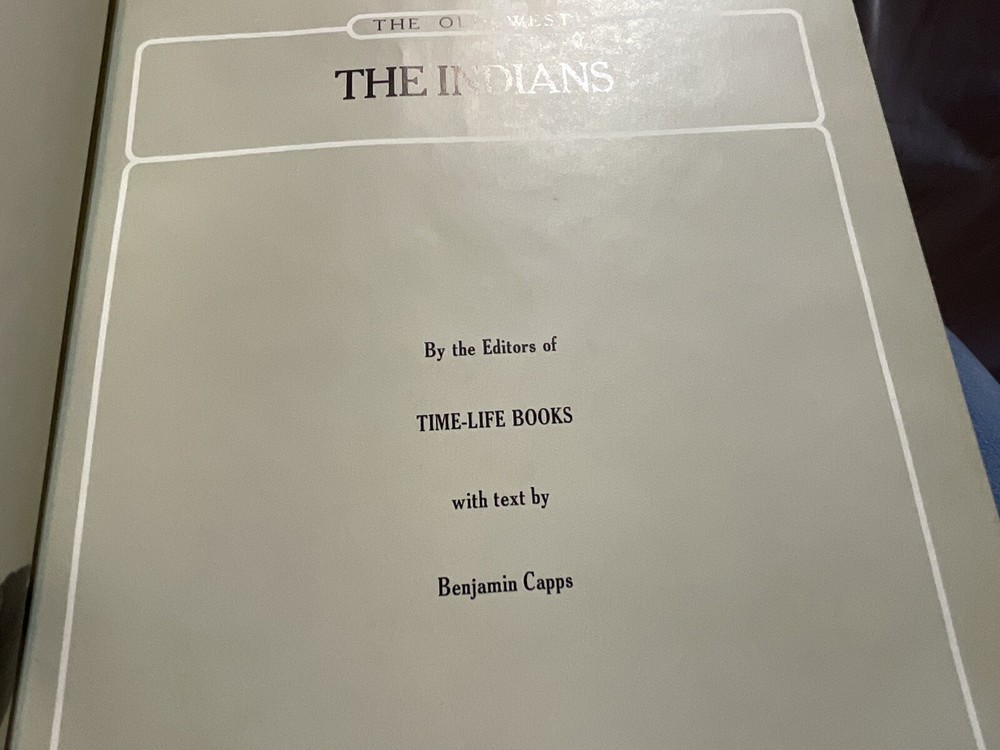 This is a vintage 1973 Time Life book from the Old West Series titled "The Indians". It is a collector's edition, illustrated with faux leather binding. The book is a non-fiction narrative type, written in English, and intended for adults. The book is a picture book with a topic on illustration. It was published by Time Life Books in Canada.