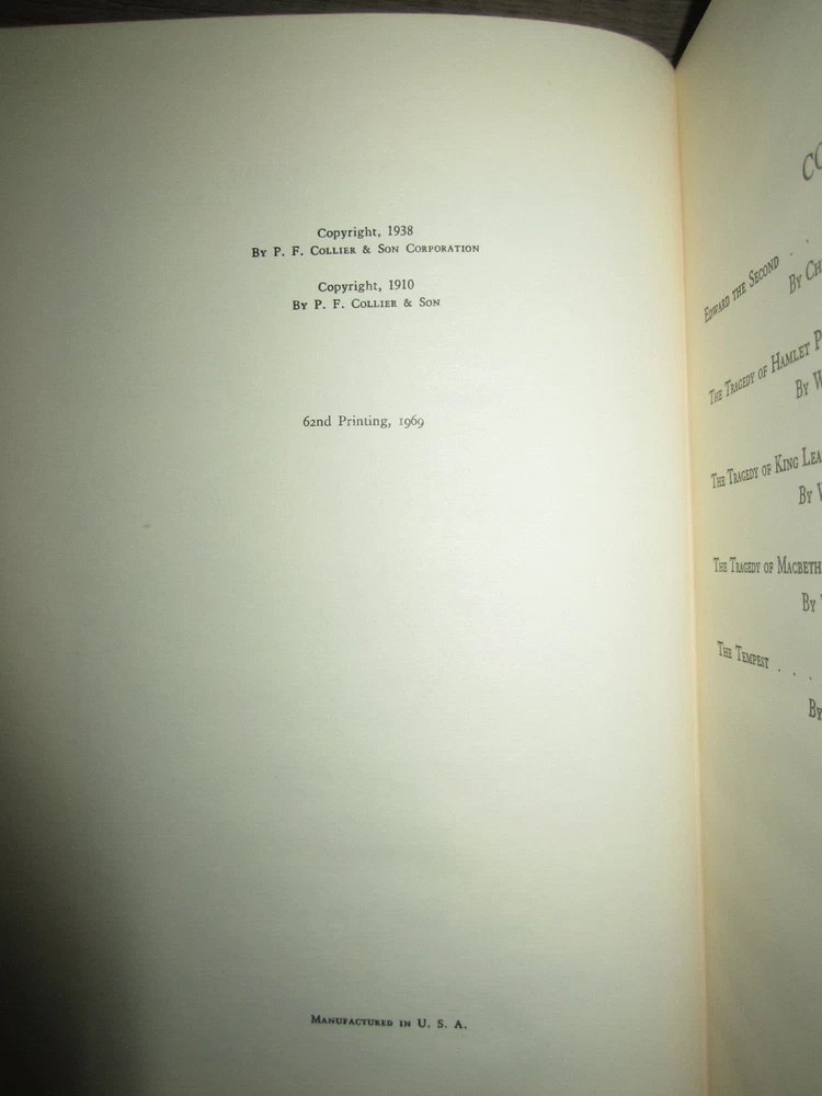 Vintage leatherbound book, Elizabethan Drama - Marlowe & Shakespeare, 1969. Published by P. F. Collier & Son - The Harvard Classics. Measures 5 3/4" x 8 1/2". Some wear as shown in photos. Sent to you from my smoke and pet free household in the US. No returns except in cases of incorrect info (I do my best to list all defects clearly, but I do occasionally miss things). Please see my other listings - now with FREE domestic shipping on all items! Please note that all my orders ship within ONE business day after payment is received (no Saturday shipping).