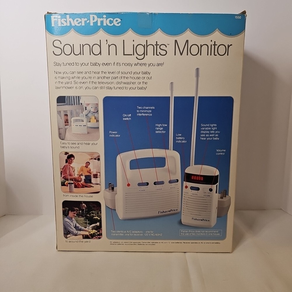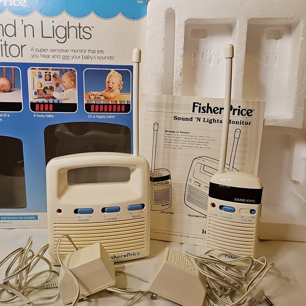 Vintage 92 Fisher Price Baby Monitor Sound 'N Lights model 1550 Transmitter & Receiver Tested and works!...
