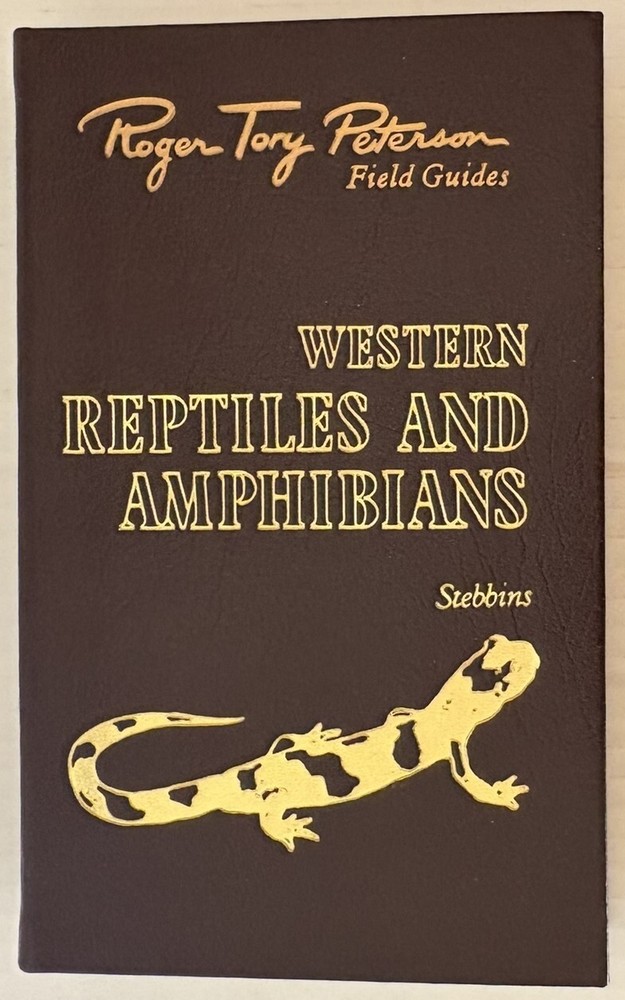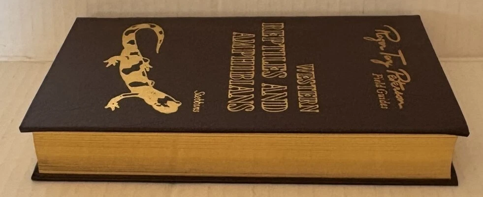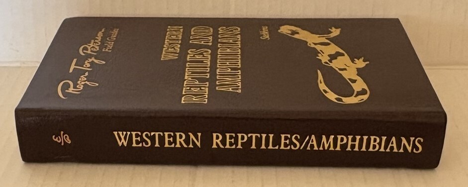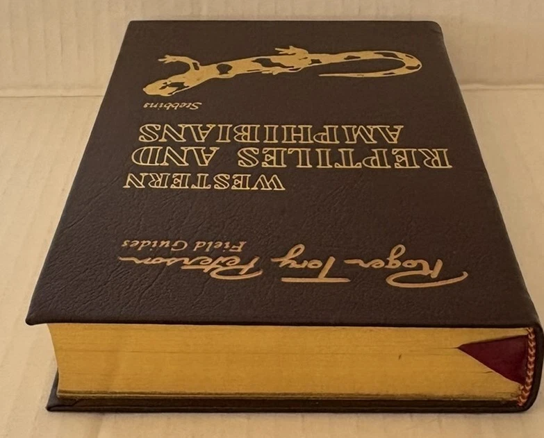 Western Reptiles & Amphibians book from the Roger Tory Peterson Field Guides series by Easton Press. Book is hardcover, leather bound with gold page edges and satin bookmark. Also included is the book plate for this book - never affixed, still with paper backing. Book is in excellent condition with only stray marks on the gold page edges, otherwise no wear. Any discoloration on the page edges in photos is from shadows/camera angle, not the pages themselves. Shipping is via USPS media mail.
