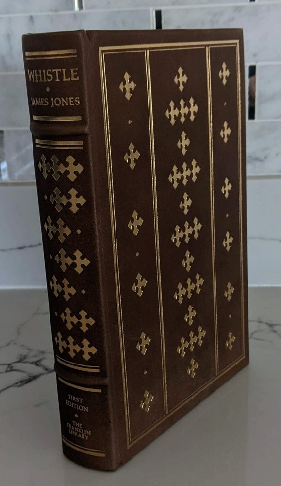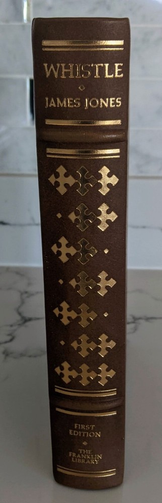 a First Edition of Whistle by James Jones , Franklin Library 1st Edition 1978 Pre-Owned in a Private collection in original packaging, never even put on the library shelf, brand new, mint condition Fine, Leather Bound. Book accented in 22kt gold. Printed on archival paper with gilded edges. The endsheets are of moire fabric with a silk ribbon page marker. Smyth sewing and concealed muslin joints to ensure the highest quality binding. This book is in full leather with hubbed spines. This collection would be great for any historical enthusiast. I tems shipped from a smoke free home. We only ship to confirmed addresses. We are not responsible for duties or taxes, no APO/FPO.