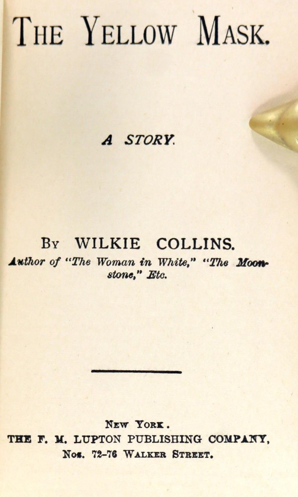 Hardcover. 8vo. Published by The F. M. Lupton Publishing Co., New York. No Date (c1890s). 160 pgs. Bound in 3/4 light brown leather with matching floral paper covered boards with titles present to the spine and front board. Boards have light shelf-wear present to the extremities. No ownership marks present. Text is clean and free of marks. Binding tight and solid. The Yellow Mask, a gothic romance, filled with mystery and suspense, will hold you riveted from beginning to end. A scheming priest, Father Rocco of Pisa, decides the inheritance and great wealth of Count Fabio D'Ascoli was stolen from the Church many generations ago. Father Rocco's brother is a master-sculptor, Fabio's teacher and the father of the beautiful Maddelena. Wilkie Collins c1890s Fine Leather Binding The Yellow Mask Gothic Mystery Wilkie Collins c1890s Fine Leather Binding The Yellow Mask Gothic Mystery Description Up For Sale Today is The Yellow Mask A Story by Wilkie Collins Hardcover. 8vo. Published by The F. M. Lupton Publishing Co., New York. No Date (c1890s). 160 pgs. Bound in 3/4 light brown leather with matching floral paper covered boards with titles present to the spine and front board. Boards have light shelf-wear present to the extremities. No ownership marks present. Text is clean and free of marks. Binding tight and solid. The Yellow Mask, a gothic romance, filled with mystery and suspense, will hold you riveted from beginning to end. A scheming priest, Father Rocco of Pisa, decides the inheritance and great wealth of Count Fabio D'Ascoli was stolen from the Church many generations ago. Father Rocco's brother is a master-sculptor, Fabio's teacher and the father of the beautiful Maddelena. To steal Fabio's fortune, the priest manipulates Fabio's true love, the sweet model Nanina, to leave Pisa. Father Rocco then engineers a wedding between Fabio and his easy-to-control niece. Poor Maddalena dies the next year in childbirth and the priest has to change his plot. The priest tries to drive Fabio mad by having a female henchman don a Yellow Mask and pretend to be the ghost of Maddalena. Fabio's only hope is his beloved Nanina. Can she save him? OUR MISSION STATEMENT: Our goal is to provide the best books for the lowest prices. We understand that you have more choices than ever to buy books, so we strive to provide the best service, accurate descriptions, the cheapest shipping and the best customer service in the realm of bookselling. Thank you for visiting this listing and we hope to see you again soon! Book formats and corresponding sizes Name Abbreviations Leaves Pages Approximate cover size (width × height) inches cm folio 2º or fo 2 4 12 × 19 30.5 × 48 quarto 4º or 4to 4 8 9½ × 12 24 × 30.5 octavo 8º or 8vo 8 16 6 × 9 15 × 23 duodecimo or twelvemo 12º or 12mo 12 24 5 × 7⅜ 12.5 × 19 sextodecimo or sixteenmo 16º or 16mo 16 32 4 × 6¾ 10 × 17 octodecimo or eighteenmo 18º or 18mo 18 36 4 × 6½ 10 × 16.5 trigesimo-secundo or thirty-twomo 32º or 32mo 32 64 3½ × 5½ 9 × 14 quadragesimo-octavo or forty-eightmo 48º or 48mo 48 96 2½ × 4 6.5 × 10 sexagesimo-quarto or sixty-fourmo 64º or 64mo 64 128 2 × 3 5 × 7.5 ALL ITEMS ARE DESCRIBED TO THE BEST OF MY ABILITY! PLEASE CHECK ALL THE PHOTOS BEFORE BIDDING! PAYMENT IS DUE WITHIN FOUR (4) DAYS OF THE INVOICE! Import duties, taxes and charges are not included in the item price. These charges are the buyer's responsibility. Please check with your country's customs office to determine what these additional costs will be prior to bidding/buying. These charges are typically collected by the delivering freight (shipping) company or when you pick the item up. We do not mark merchandise values below value or mark items as "gifts" as US and International government regulations prohibit such behavior. (This is a felony in the United States) Showcase your items with Auctiva's Listing Templates! THE simple solution for eBay sellers. Track Page Views With Auctiva's Counter