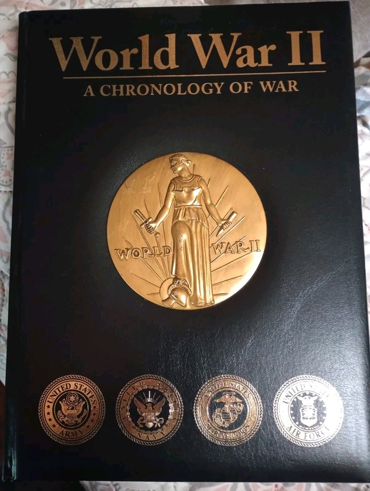 This is a copy of World War II A Chronology Of War - Leather Bound - Like New!! This exquisite leather-bound book titled "A Chronology of War" is a must-have for any history enthusiast. It meticulously chronicles the events of World War II through precise and insightful analysis. The book features a unique perspective on the war, with contributions from the Army, Navy, Air Force, and Marines. The book is a part of the Historical book series and was published in 2017 by Beaux Arts Editions. It is written in English and covers a range of topics related to the war. This novel is an excellent addition to any book collection and is a true gem for history lovers. This book was bought new and stored, it has never been read.