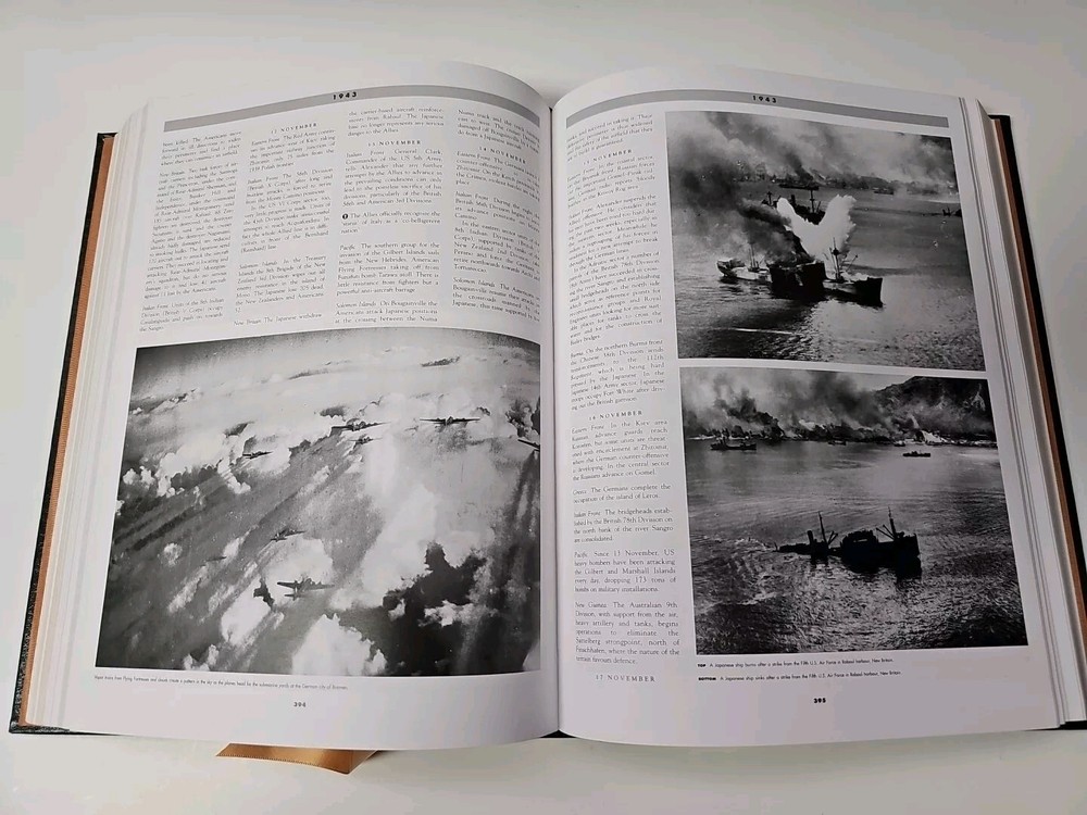 This World War II Album is a must-have for any history enthusiast. The collector's edition hardcover format is leatherbound and features 544 pages of captivating stories and timelines by year about the military and the world war. Heavy Leatherbound Collector's Edition book. 11.75H x 9.75W