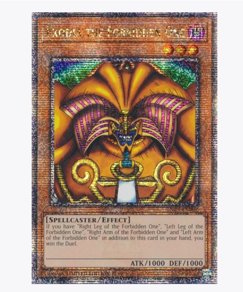 Own a piece of Yu-Gi-Oh! history with this rare Exodia the Forbidden One card from the MP23 set. Featuring the iconic Hero creature type and the attribute of Darkness, this card is a must-have for any serious collector. Manufactured by Konami, this card is sure to be a standout addition to your collection. Celebrate the 25th anniversary of the game with this rare and highly sought-after card. Perfect for collectors and players alike, this card is sure to impress. Don't miss out on your chance to own a piece of Yu-Gi-Oh! history with this Exodia the Forbidden One card. Nm condition: ships within 2-3 business days