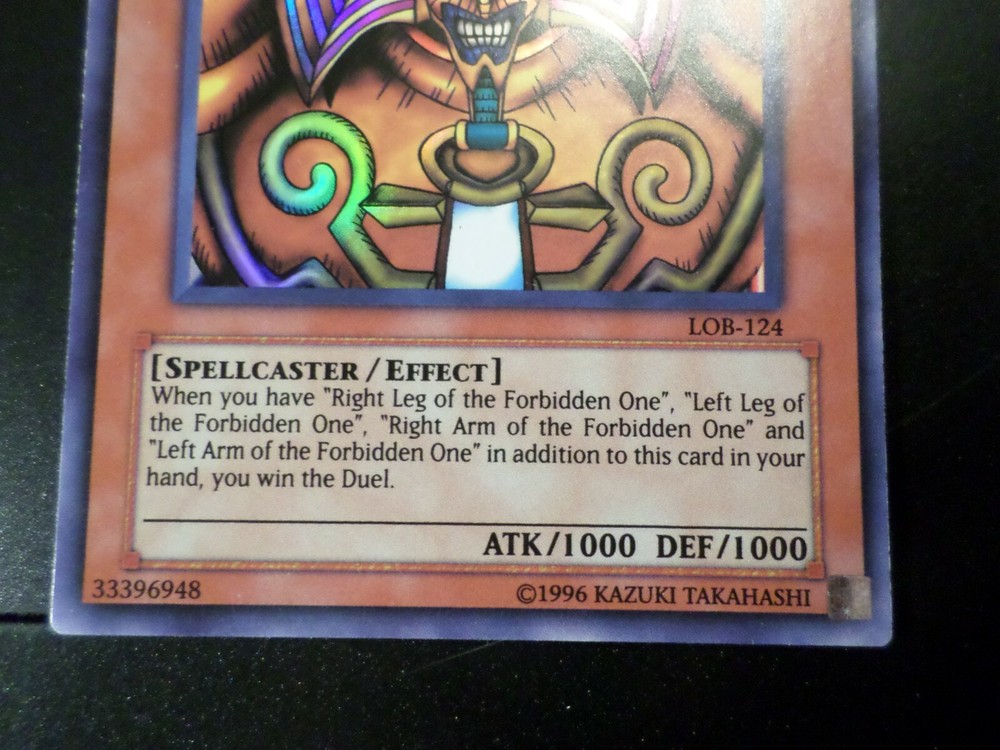 This listing is for ONE YUGIOH EXODIA THE FORBIDDEN ONE LOB-124 ULTRA RARE MINT NEW Rarity: SCR - Secret Rare UR- Ultra Rare SR - Super Rare ULT - Ultimate Rare Near Mint (NM) Excellent to close to mint. Excellent (EX) Card may have minor edge wear / small dents more due to handling than to play. Lightly Played (LP) Card may have edge wear and/or small dents, but no major creases. Moderately Played (MP) Card may have visible creases, dents and/or edge wear. Heavily played (HP) Card will have noticeably damage such as large creases and/or heavy edge wear. Note: If edition of card(s) is not mentioned, it is for unlimited edition. Card(s) will be shipped with protective sleeve and in top loader Please note I am just a private collector, not a professional cards grader. Cards conditions are judged based on my personal opinions. Since I don’t price them based on professional standards in the market, please allow room for discrepancies. To ensure that your satisfaction is met with the highest standard, I usually pictured with actual card(s) – front and back unless there are multiple copies of the same card listed. Please feel free to contact me prior purchase if want to see more pictures or understand better of the card(s) conditions. All cards are guaranteed authentic. I don't take return unless item was incorrectly described/ reason due to my mistakes. I will try my best to rectify any problems or answer any questions that you may have. Please check your address to ensure it is complete and deliverable. Serious buyers only. Listing takes time and cost money. Please purchase/make offer when you are ready to pay/upon acceptance of offer. Thank you. ______________________________________________________________ YUGIOH CARDS LISTINGS Shipping & Handling is $4.95 (tracked shipping) to the U.S. Shipping to Canada is $5.95 and international is $17.95 for as many cards as you can purchase with combined shipment. Customs duties, if any, are for buyer's account. Tracking will be provided if available. When tracking is not offered, please strictly follow information in my shipment confirmation about expected arrival time or waiting period for claims. Please allow sufficient time for item(s) delivery and contact me first prior to opening any claims. I will provide proof of shipment upon request and money back guarantee if item doesn't show up after the waiting period. Thank you and appreciate your co-operation. Track Page Views With Auctiva's FREE Counter