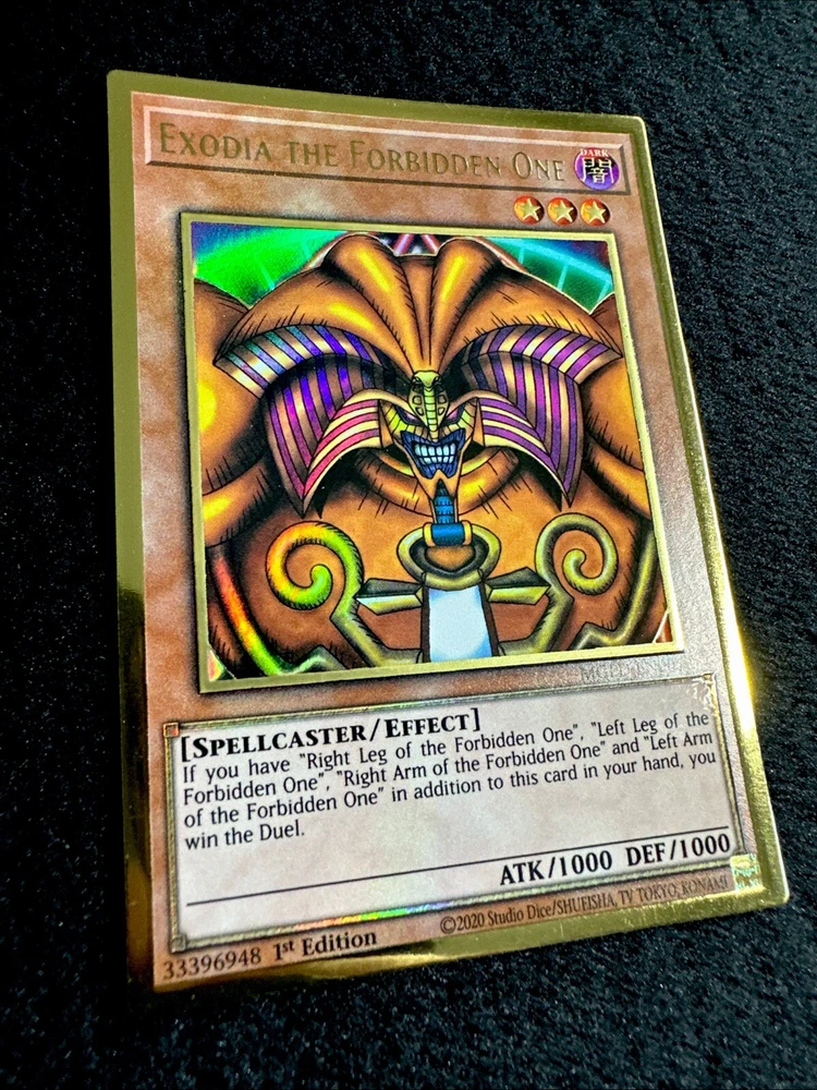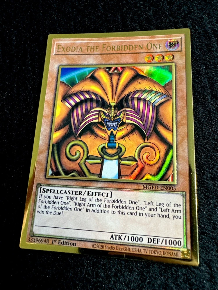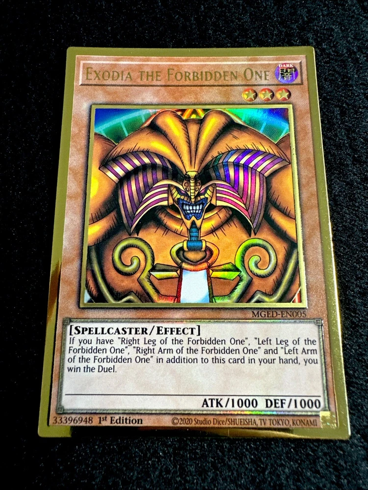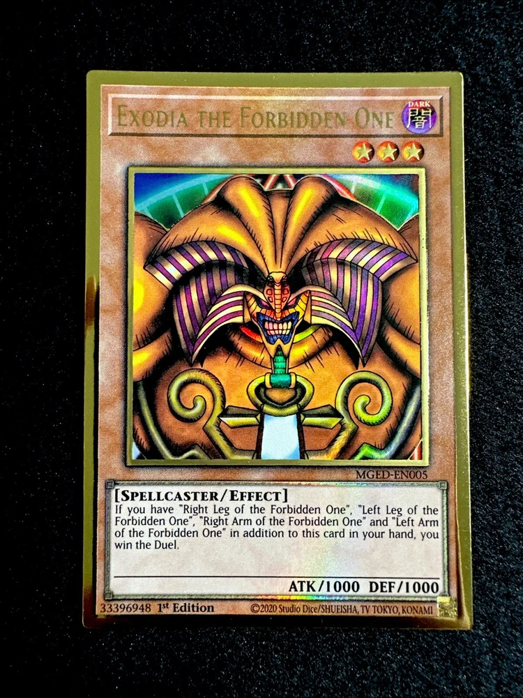 🔥 YuGiOh • EXODIA THE FORBIDDEN ONE • ULTRA RARE • 1st • MGED-EN005 • NM🔥 Card Sleeve Included + Top Loader •Never Play Near Mint or Mint card • Authentic Konami USA Version YOU ARE GUARANTEED TO GET THE CARD NAMED IN THE TITLE. Thank you.