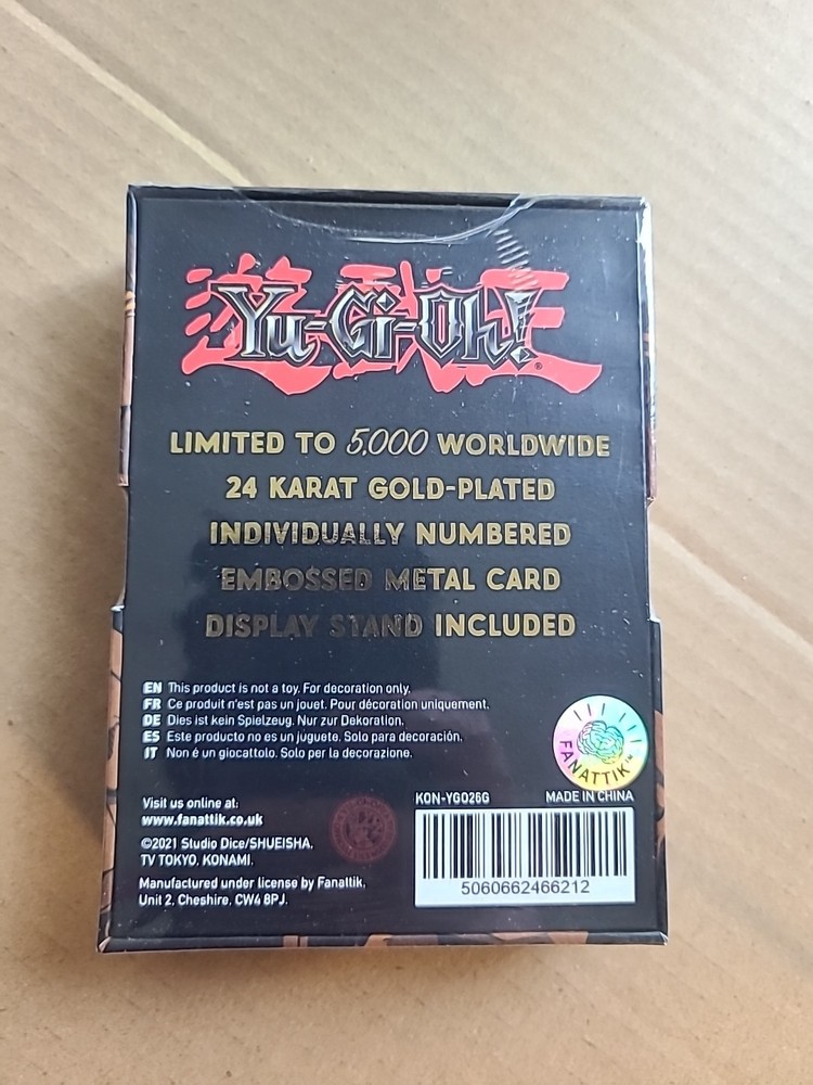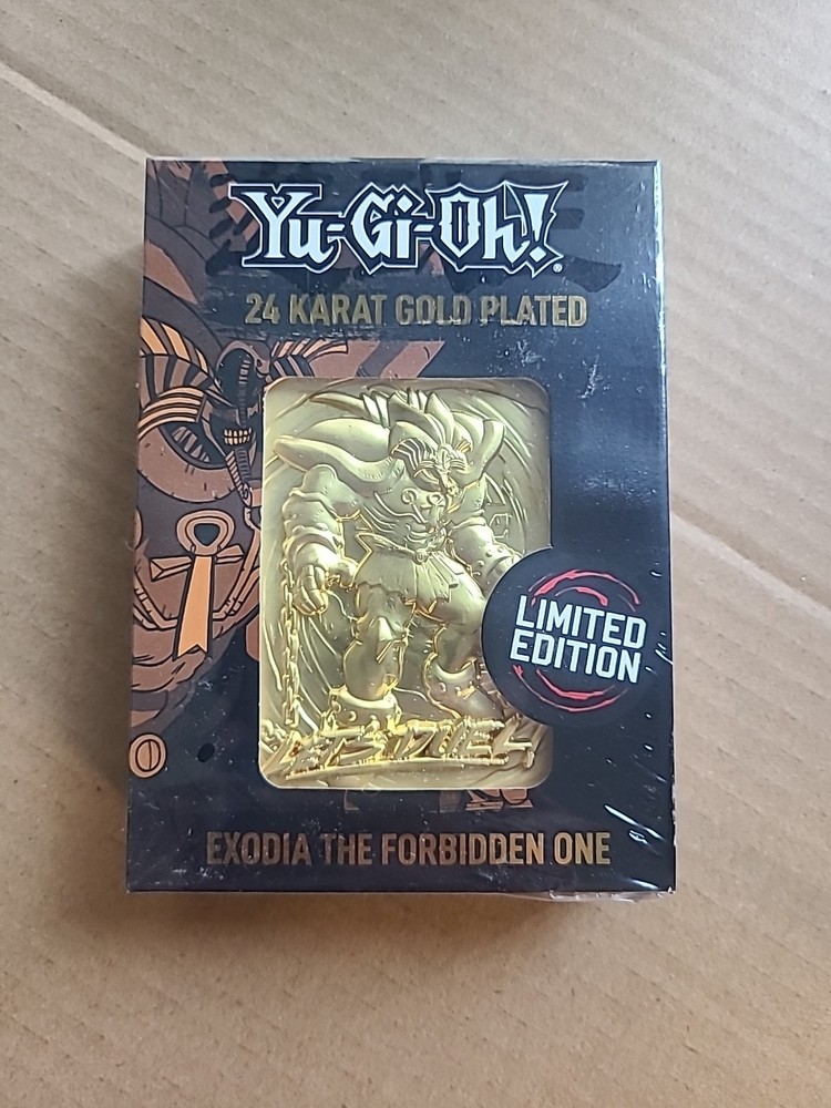 The YUGIOH Exodia the Forbidden One 24 Karat Gold Plated Limited Edition card is a highly sought-after collectible for fans of the Yu-Gi-Oh! Trading Card Game. This rare card features the iconic Exodia character in a luxurious gold plated design, making it a valuable addition to any card collection. The card is in English language and is part of a limited edition release, adding to its exclusivity and appeal to collectors.
