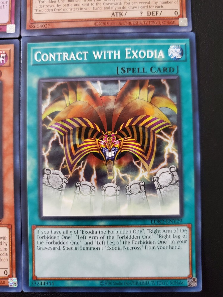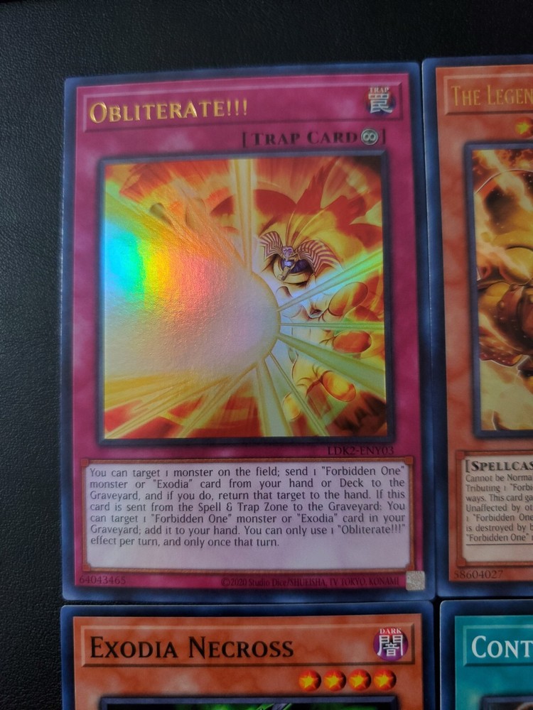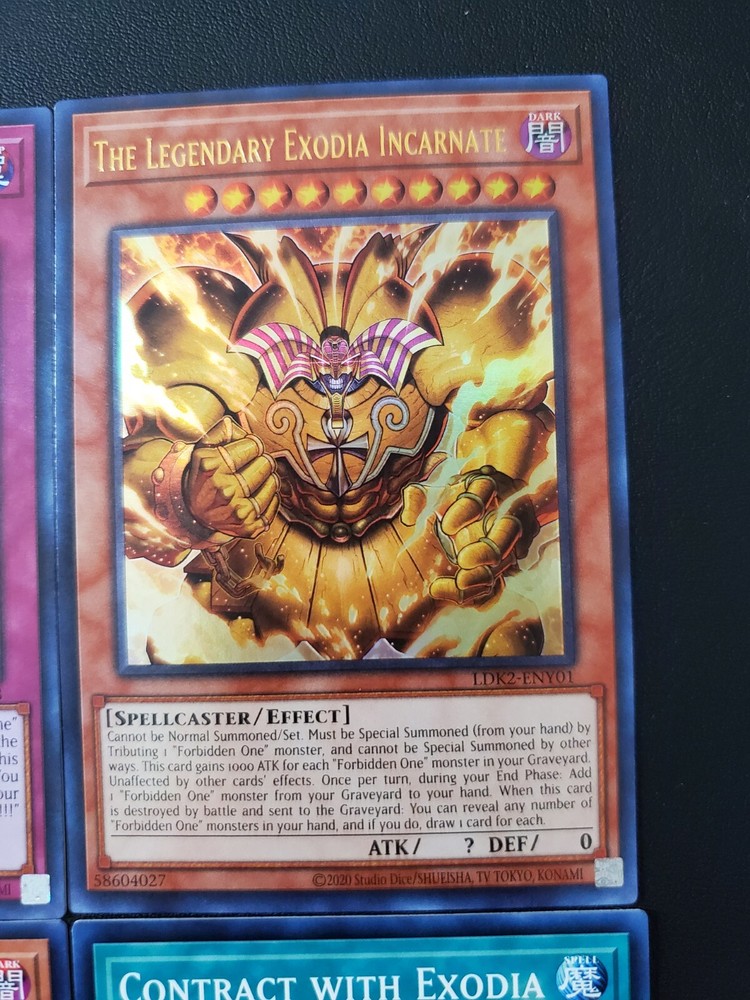 DESCRIPTION YUGIOH Legendary Exodia Incarnate Exodia Necross Obliterate LDK2 Ultra Rare Item Includes: 1x The Legendary Exodia Incarnate (Ultra Rare) 1x Obliterate!!!(Ultra Rare) 1x Exodia Necross 1x Contract with Exodia SHIPPING We ship up to 3 day after payment, except for holidays and weekend or when the delivery service is not available. FOR UNITED STATES CUSTOMERS: We use First Class for all kind of shipments, this include tracking number and the estimated delivery day is between 3 to 5 days, If you need a faster service send us a Message and we will help you to choose it. FOR INTERNATIONAL CUSTOMERS (outside united states): International shipping prices differ for each country and are calculated automatically by eBay. Tracking information is not available for international buyers beside Canada, once the package leave the US, the buyer have complete responsibility for that shipping. All duties and taxes are the responsibility of the buyer. They are not included in the listed price. Please check with your domestic customs office to determine what your additional costs will be prior to bidding. If you need to combine shipping please send us a message to help you.