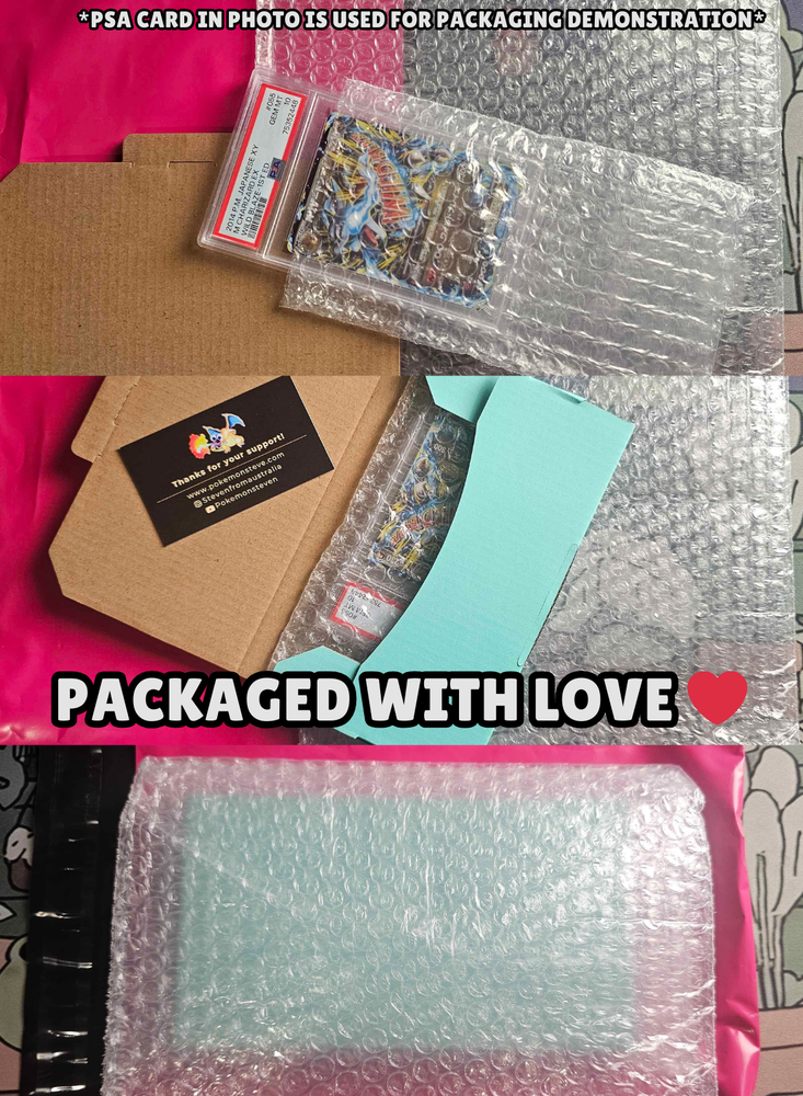 Recieved graded card in the best packing to date, had its own box for the graded card bubble wrapped within and extra potectiom in bubbled envelope and tracked. Fast time and great communication from seller. Will be saving this seller for future purchases. Highly recommend, product was in mint condition with zero issues. A+++++. Thank you!! π