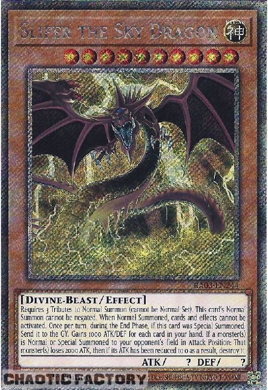 RA03-EN244 Slifer the Sky Dragon MVP1 Art Platinum Secret Rare 1st Edition NM PREORDER, PROCESS AFTER 08/11/2024' YU-GI-Oh! Product details (click to expand) Condtion Details NM Mint or Near mint LP Light Played, minor scatch or edge wear HP Heavy Played; very visible damages NOTE Refer to ebay's condition guide for further details Specifications (click to expand) SKU RA03-EN244 Model # Barcode # Brand YU-GI-Oh! Artist / Author Shipping Weight 0.0200kg Shipping Width 0.000m Shipping Height 0.000m Shipping Length 0.000m Shipping Cubic 0.000000000m3 Unit Of Measure ea Assembled Length 0.000m Assembled Height 0.000m Assembled Width 0.000m Type Format Delivery & Turn Around time (click to expand) Packing We always pack with toploader & soft sleeves Postage Method - Doemstic Standard Untracked Untrack letter post, delivery within 15 business days Domestic Tracked Tracked letter post, delivery within 15 business days with tracking Express Post Express Post; delivery after 2 to 3 business days after dispatch using AUSPOST's express network, exclusion applies; check auspost's website for details Turn Around time Dispatch 2 to 3 business days; which mean EXCLUDE WEEKEND © 2025 Chaotic Factory