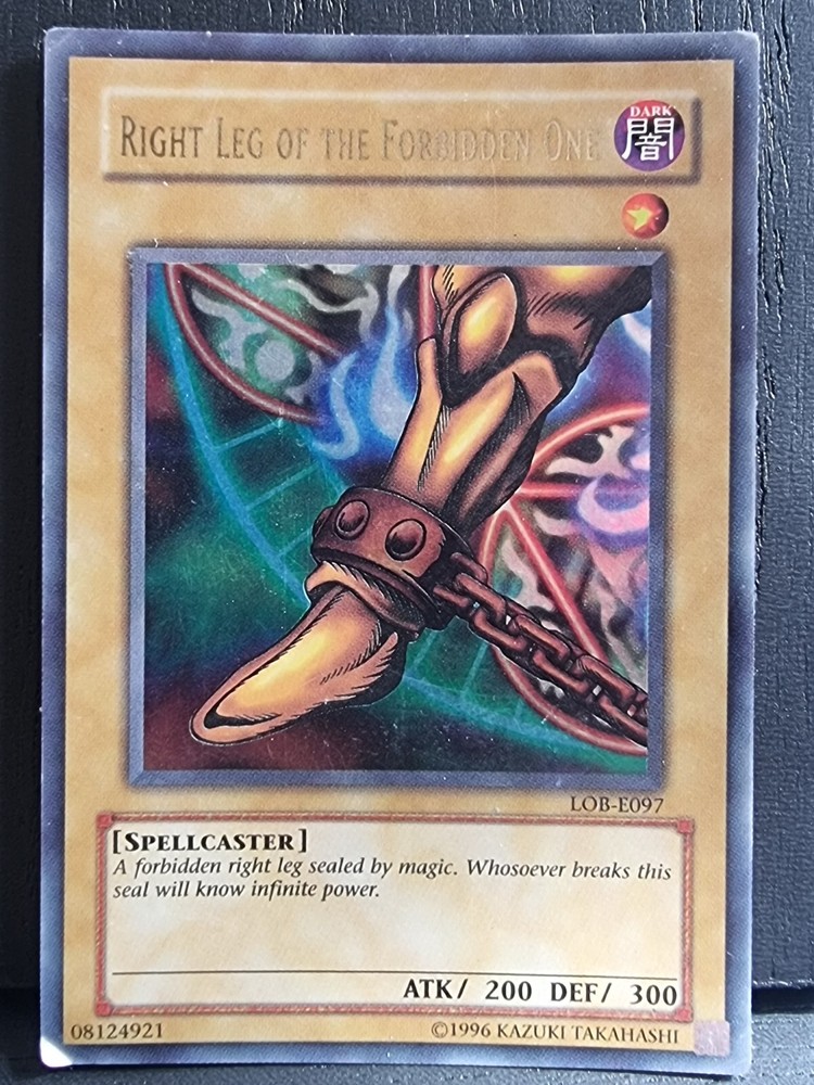 This rare and highly sought-after card is a must-have for any serious Yu-Gi-Oh! TCG collector. With its Ultra Rare rarity and 1st Edition status, the Right Leg of the Forbidden One card is sure to be a prized possession in any collection. Featuring the iconic Exodia card name and the card number LOB-E097, this Monster card is in excellent shape and ready to be added to your collection. Don't miss your chance to own this amazing card!