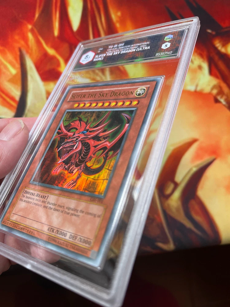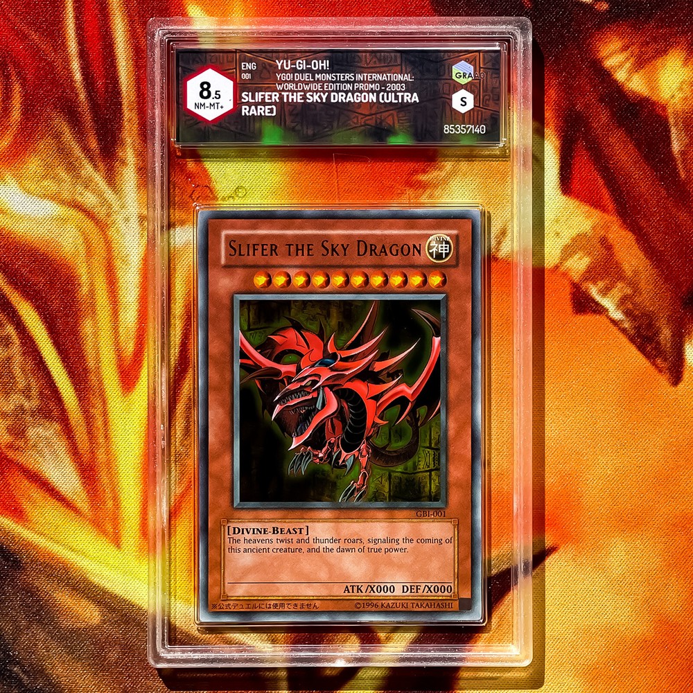 YUGIOH • Slifer the Sky Dragon GB1-001 2003 NM-MT+ 8.5 GRAAD (ULTRA RARA) YGO! Duel Monsters International Worldwide Edition Promo 2003 Su richiesta trasferimento proprietà del certificato GRAAD dopo l'acquisto GRAAD è molto rigorosa, la carta sembra perfetta, quindi potresti ottenere una valutazione anche migliore facendola Regradare YUGIOH • Slifer the Sky Dragon GB1-001 2003 NM-MT+ 8.5 GRAAD (ULTRA RARE) YGO! Duel Monsters International Worldwide Edition Promo 2003 GRAAD digital property certificate transfer available after purchase GRAAD is very strict the card looks perfect so you could get even better regrading it