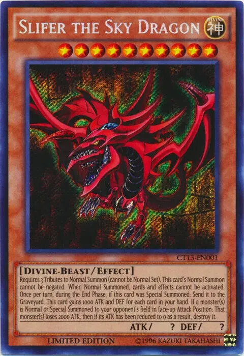 ***YU-GI-OH*** ***SLIFER THE SKY DRAONG*** **SECRET RARE** **LIMITED EDITION** **HOLOGRAPHIC** **COLLECTOR'S TIN VOL.13 CT13-EN001** **N/MINT CONDITION ** W ELCOME TO CRAZY_LITTOSTORE ! TO MAKE YOUR PURCHASE AS SIMPLE AND EASY AS POSSIBLE, PLEASE REFER TO THE DETAILED STORE POLICIES LISTED BELOW. PLEASE REVIEW OUR TERMS BEFORE BIDDING. PLACING A BID ON OUR AUCTION IS YOUR ACCEPTANCE OF THESE TERMS. WITHIN 48 HOURS OF WINNING AN ITEM IN AUCTION OR COMPLETING A BUY IT NOW PURCHASE, COMPLETE THE CHECKOUT NOW PART OF THE TRANSACTION. WE HAVE UNPAID ASSISTANT TO OPEN OR CLOSE THE CASES ON OUR BEHALF. SO THE SYSTEM WILL BE AUTOMATICALLY OPEN CASES IF THE PAYMENT ISN'T RECEIVED WITHIN 7 DAYS OF THE CLOSE OF THE SALE. THE AUCTION WILL ALSO BE VOIDED AND A NON-PAYING ALERT WILL BE FILED WITH EBAY. WE ACCEPT PAYMENT THROUGH PAYPAL: DUE TO EBAY POLICIES, YOU ARE NOW ONLY HAVE ONE PAYMENT OPTION. CUSTOMER SERVICE: WHY CHOOSE US? OUR CUSTOMERS KNOW THAT WE ARE AN HONEST, TRUSTWORTHY SELLER THAT IS COMMITTED TO SATISFACTION BY PROVIDING HIGH QUALITY PRODUCTS AND STELLAR CUSTOMER SERVICE. CUSTOMER SATISFACTION IS OUR # 1 GOAL! DON'T HESITATE TO CONTACT US WITH ANY QUESTIONS OR CONCERNS. SHIPPING: WE WILL BE SECURELY SHIPPED YOUR ORDER WITH TRACKING CONFIRMATION NUMBER WITHIN 24 HOURS AFTER THE PAYMENT COMPLETED BY PAYPAL SYSTEM (MONDAY THROUGH SATURDAY), IF USED PAYPAL FOR YOUR PAYMENT METHOD. IMPORT DUTIES, TAXES AND CHARGES ARE NOT INCLUDED IN THE ITEM PRICE OR SHIPPING FEES. THESE CHARGES ARE THE BUYER RESPONSIBILITY. PLEASE CHECK WITH YOUR COUNTRY'S CUSTOMS OFFICE TO DETERMINE FOR WHAT THESE ADDITIONAL COSTS WILL BE PRIOR TO YOUR BIDDING/BUYING. THESE CHARGES ARE NORMALLY COLLECTED BY THE DELIVERY FREIGHT (SHIPPING) COMPANY OR WHEN YOU PICK UP THE ITEM. PLEASE DO NOT CONFUSE THEM FOR ADDITIONAL SHIPPING CHARGES. WE DO NOT MARK MERCHANDISE VALUES BELOW ITS VALUE OR MARK ITEMS AS "GIFTS". US AND INTERNATIONAL GOVERNMENT REGULATIONS HAS PROHIBITED SUCH BEHAVIOR. USPS FIRST CLASS MAIL = $3.18 =========>>>>> INT'L USPS FIRST CLASS = $13.95 USPS PRIORITY MAIL = $7.95 ==========>>>> INT'L PRIORITY MAIL = $48.95 USPS EXPRESS MAIL = $28.95 ===========>>>> INT'L EXPRESS MAIL = $65.95 WE WILL COMBINE SHIPPING FOR MULTIPLE PURCHASE $.50 EACH ADDITIONAL ITEM.... RETURNS: ITEMS THAT ARE SOLD ARE GUARANTEED AGAINST DOA (DEAD-ON ARRIVAL). IT IS THE BUYER'S RESPONSIBILITY TO CONTACT US BY E-MAIL WITHIN 48 HOURS OF PRODUCTS DELIVERY IF AN ITEM IS DEFECTIVE. OTHERWISE, THE DOA GUARANTEE EXPIRES. PRODUCTS CANNOT BE RETURNED OF REASONS OTHER THAN DEFECTIVENESS. YOUR MONEY WILL BE GLADLY REFUNDED IF RETURNED IN ORIGINAL CONDITION. BUYER IS RESPONSIBLE FOR ALL SHIPPING CHARGES OF RETURN ITEMS AND SHIPPING CHARGES ARE NON-REFUNDABLE. THIS RETURN POLICIES DOES NOT APPLY TO AUTOMOBILES. DON'T MISS OUT ON THIS GREAT DEAL! DON'T HESITATE......... BID NOW !!! THANKS FOR BIDDING AND GOOD LUCK !!!!