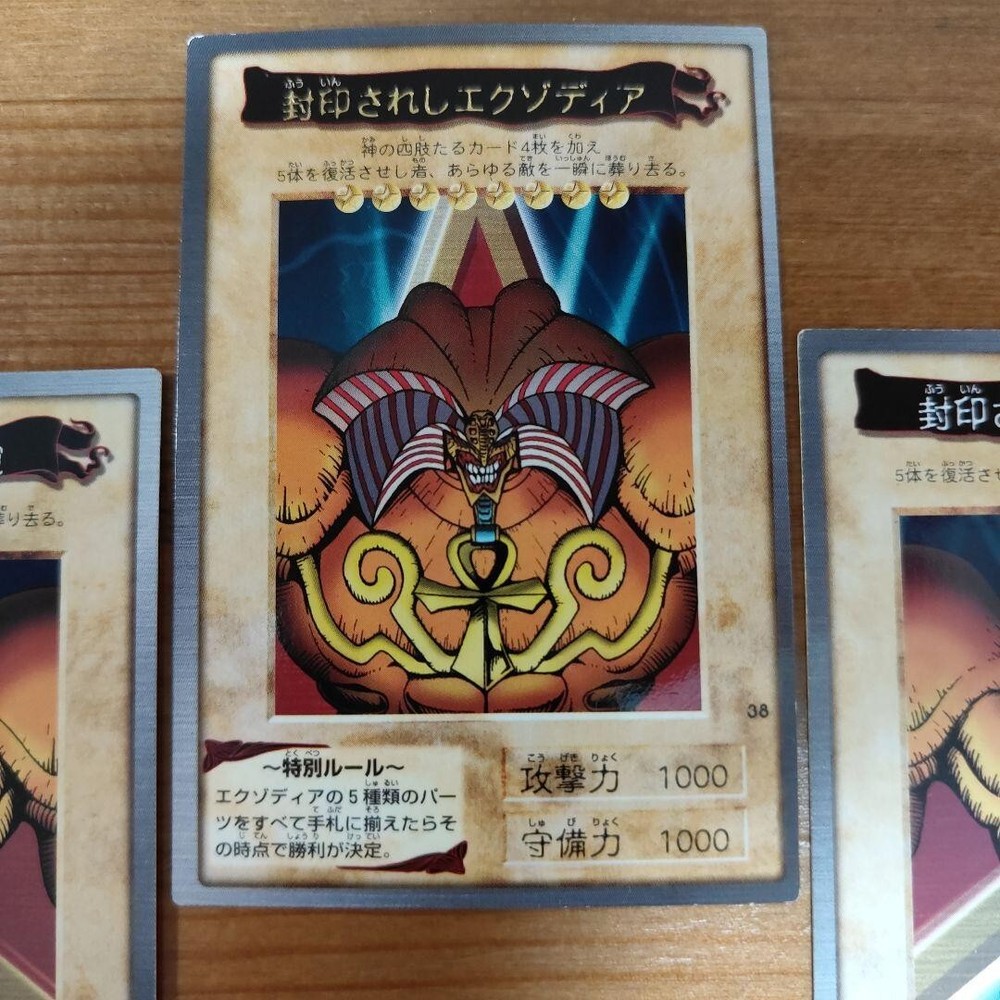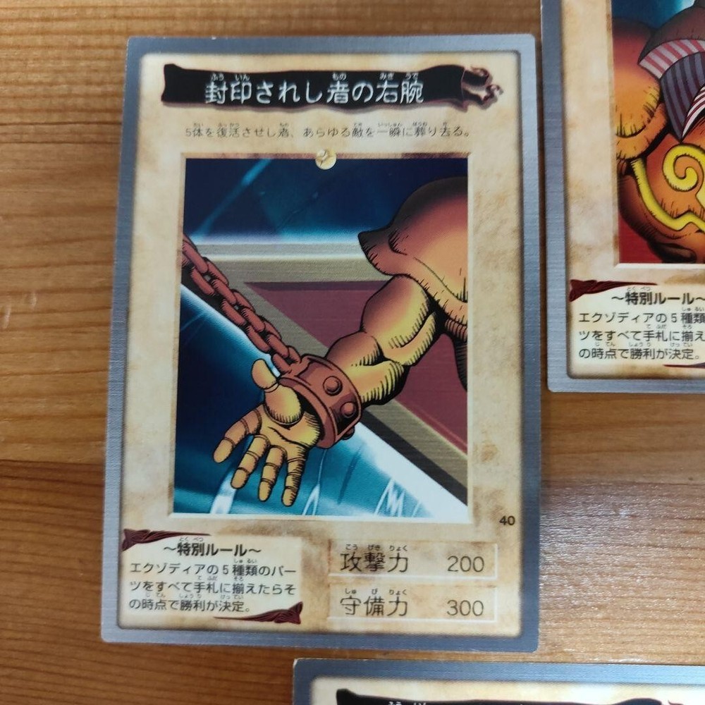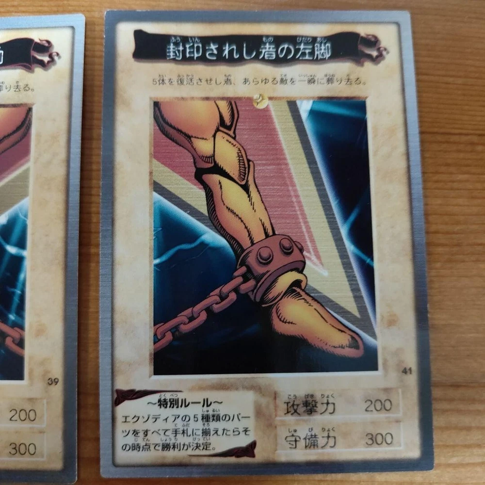 Exodia the Forbidden One – Complete Set (All 5 Pieces) Yu-Gi-Oh! Duel Monsters – Original Ultra Rare – Japanese First Edition Category: Multiple Cards (Single Set) Card Type: Monster Card Monster Type: Effect Monster (Exodia the Forbidden One) Normal Monsters (Arms, Legs) Attribute: DARK Race: Spellcaster Rarity: Ultra Rare Edition: Carddass These are cards that were used at the time , so there are scratches and wear . To avoid any issues, please consider all cards as for play use only . Check the photos carefully to confirm the condition before purchasing. +++About Shipping+++ We will ship by Japan Post,DHL, FEDEX +++Payment+++ Supports managed payments Please pay within 5 days after auction is finished. +++International Buyers ? Please Note: +++ ·Import duties, taxes and charges are not included in the item price or shipping charges. These charges are the buyer?s responsibility. ·Please check with your country?s customs office to determine what these additional costs will be prior to bidding/buying. ·These charges are normally collected by the delivering freight (shipping) company or when you pick the item up ? do not confuse them for additional shipping charges. ·We do not mark merchandise values below value or mark items as ?gifts? ? US and International government regulations prohibit such behavior.