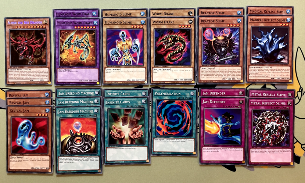 YUGIOH Slifer the Sky Dragon / Slime / God - 24 Cards Deck Core - 1st Edition - Brand New / Near Mint Condition - SPEED DUEL Deck core contains the following: EXTRA DECK: Humanoid Worm Drake ( Common) x2 MONSTERS: Slifer the Sky Dragon ( Secret Rare) x1 Humanoid Slime ( Common) x2 Worm Drake ( Common) x2 Reactor Slime ( Common) x2 Magical Reflect Slime ( Common) x2 Revival Jam ( Common) x3 SPELLS: Jam Breeding Machine ( Common) x3 Infinite Cards ( Common) x2 Polymerization ( Common) x1 TRAPS: Jam Defender ( Common) x2 Metal Reflect Slime ( Common) x2 If you have any questions, feel free to send me a message!