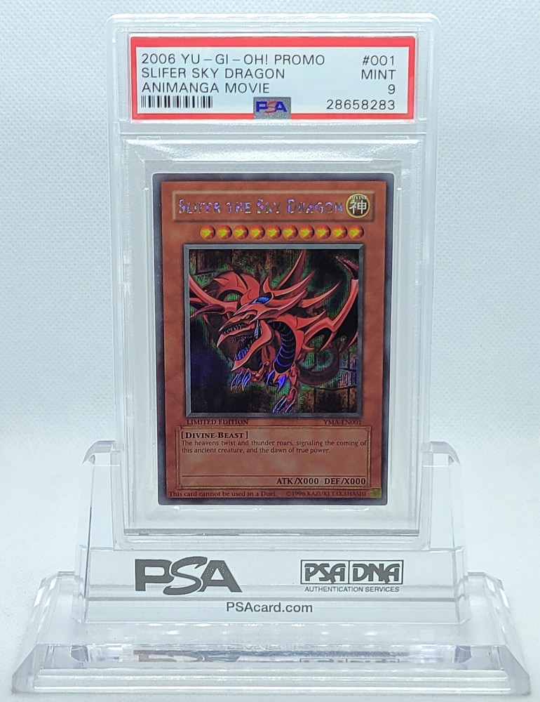 Description Condition: PSA 9 MINT Availability: In Stock You are Purchasing YUGIOH YMA-EN001 SLIFER THE SKY DRAGON SECRET RARE HOLO PSA 9 MINT #28658283 Professionally graded by Professional Sports Authenticator (PSA) *PLEASE REVIEW PHOTOS BEFORE BIDDING/BUYING >>MORE GRADED YUGIOH CARDS<< IG: CARD_RUSH_INC Payment Options Payment is expected within 7 days of your purchase date. We accept all forms of payments through Paypal. Shipping and Handling We ship to all U.S. states, U.S. territories, APO/FPO locations and any international countries listed under our "ship to" heading. Shipping and Handling is calculated based on the combined shipping weight of your item(s). Please use the shipping calculator to estimate your shipping and handling charges. In order to qualify for combined shipping terms, all items must be paid for in one payment; please do not pay until you are done bidding/shopping. Please contact us if you have any questions regarding our shipping and handling terms. Shipping and Delivery Packages are shipped out every Monday, Wednesday, and Friday. Domestic Packages take approximately 2-7 days to arrive. International packages may take a little longer to arrive, typically 1-4 weeks. Please allow ample transit times before inquiring about your package, thank you. Sales Tax Sales tax will be automatically collected by Ebay. Customer Service We will make every effort to get your purchase is mailed in a timely manner. Please contact us if you have any questions or concerns; we would love to hear any suggestions you have on how we can improve your eBay experience. Thank you for visiting us today.
