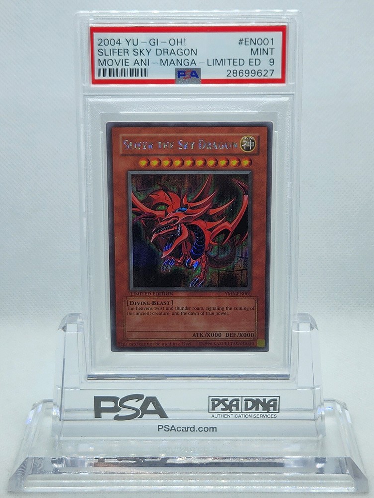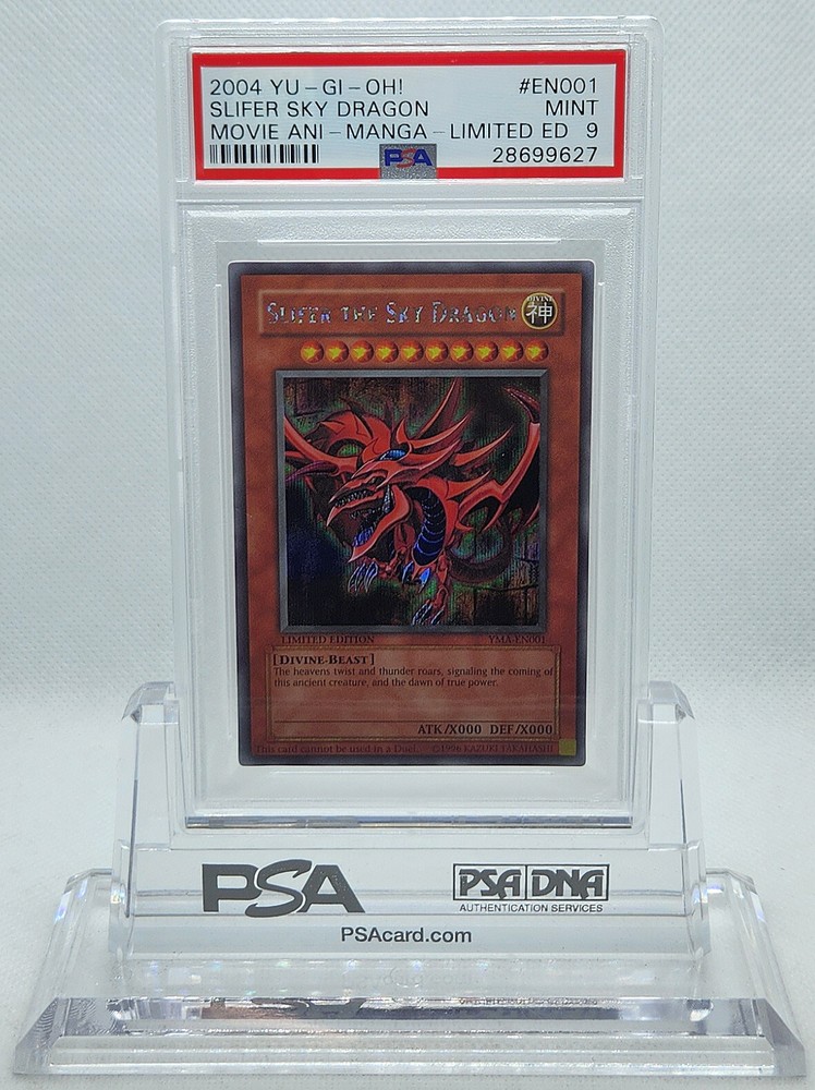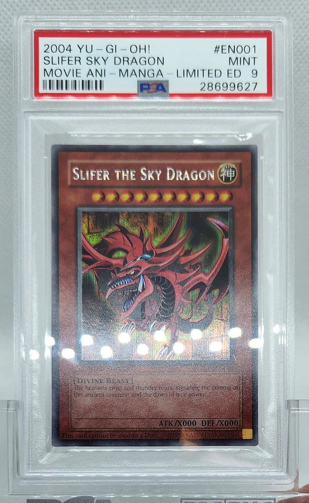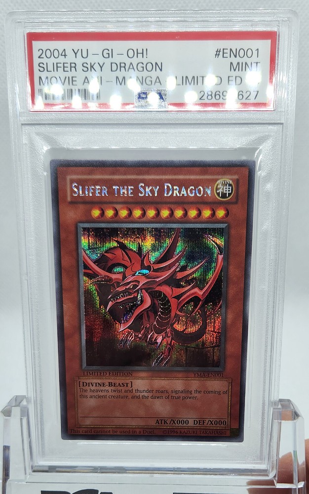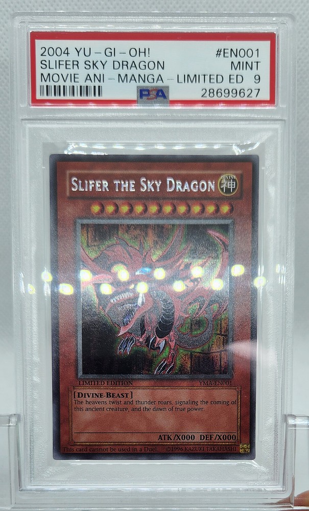 Description Condition: PSA 9 MINT Availability: In Stock You are Purchasing YUGIOH YMA-EN001 SLIFER THE SKY DRAGON SECRET RARE HOLO PSA 9 MINT #28699627 Professionally graded by Professional Sports Authenticator (PSA) *PLEASE REVIEW PHOTO(S) BEFORE BIDDING/BUYING. >>MORE GRADED YUGIOH CARDS<< IG: CARD_RUSH_INC Payment Options Payment is expected within 7 days of your purchase date. We accept all forms of payments through Paypal. Shipping and Handling We ship to all U.S. states, U.S. territories, APO/FPO locations and any international countries listed under our "ship to" heading. Shipping and Handling is calculated based on the combined shipping weight of your item(s). Please use the shipping calculator to estimate your shipping and handling charges. In order to qualify for combined shipping terms, all items must be paid for in one payment; please do not pay until you are done bidding/shopping. Please contact us if you have any questions regarding our shipping and handling terms. Shipping and Delivery Packages are shipped out every Monday, Wednesday, and Friday. Domestic Packages take approximately 2-7 days to arrive. International packages may take a little longer to arrive, typically 1-4 weeks. Please allow ample transit times before inquiring about your package, thank you. Sales Tax Sales tax will be automatically collected by Ebay. Customer Service We will make every effort to get your purchase is mailed in a timely manner. Please contact us if you have any questions or concerns; we would love to hear any suggestions you have on how we can improve your eBay experience. Thank you for visiting us today.