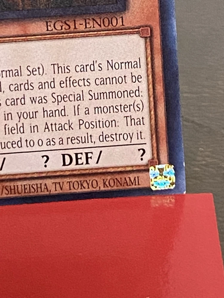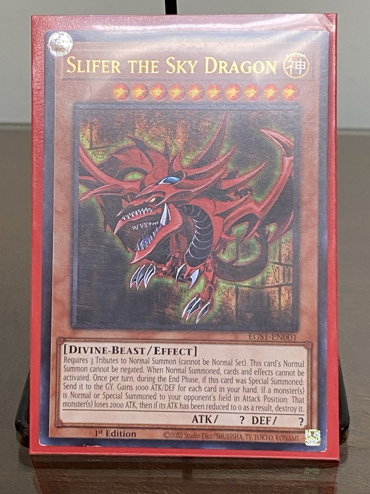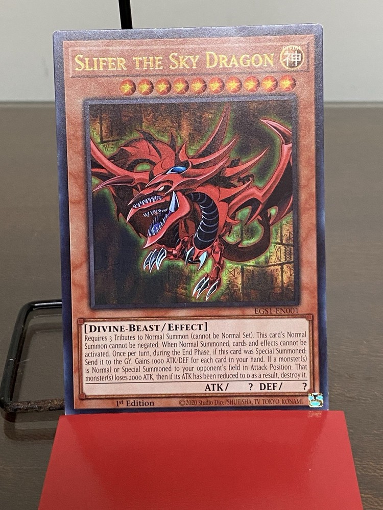 Yu-Gi-Oh! 1996 Slifer the Dragon EGS1-EN001 1st Edition Never Played is in Near Mint or Better Great card with clean surface, sharp corners and bright colors. Card has been visually graded as best I can, but my grading may differ from your opinion. So please examine photos closely before purchasing for they are the best description, ask for more photos if needed. Thanks for viewing! Will combine shipping. All reasonable offers considered. Colors may be slightly different than shown due to the nature of color variation from monitor to monitor. I do my best to take the best pictures and depict the accuracy of items. See Photos for more Details and Descriptions. Ask for more pictures if needed. All items ordered on Sat. or Sun. will be shipped on Monday via USPS. All items sold in "as is" and "as described" condition. So please look closely at the photographs before making a purchase. Please make sure your shipping address is listed correctly prior to sending payment.