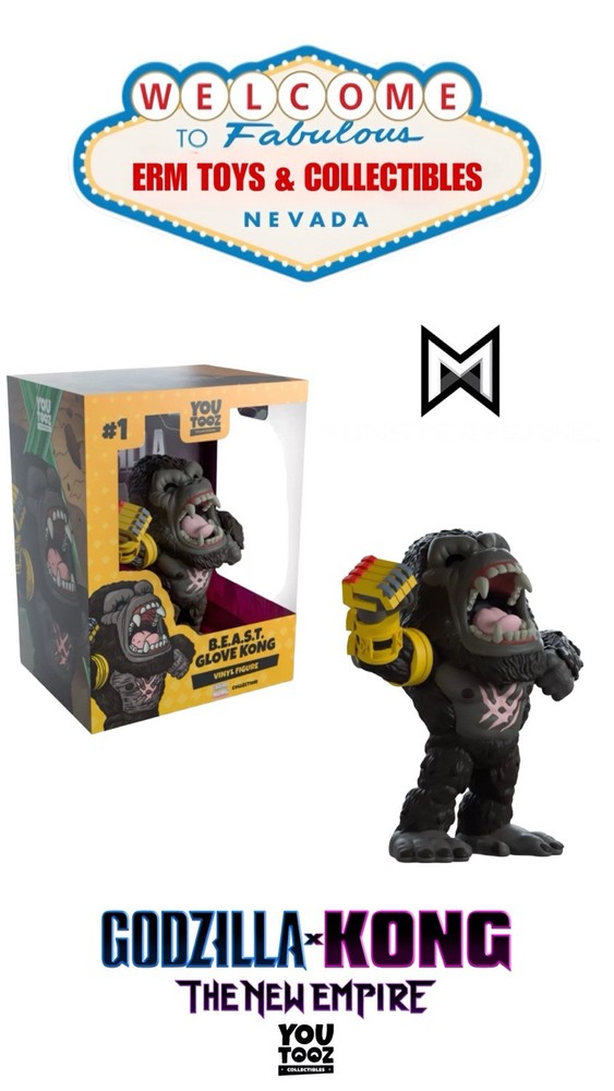 YouTooz: Godzilla x Kong: The New Empire Collection - B.E.A.S.T. Glove Kong With Custom-Sized Plastic Protector The Collectible Defender of the Hollow Earth. Kong’s back, and he returns to Youtooz with some upgrades! Standing at 4.7 inches tall, he’s posed beating his chest threateningly as a powerful roar explodes from his open mouth which sees a pink tongue curling behind a set of sharp teeth. With a bright yellow metal glove that red knuckles fixed to his raised right arm, thick pink scars cross his muscular chest as his brown furred body is supported by a set of large rugged feet. The exterior of his packaging sees Kong and Godzilla charging through a rocky brown cave past long green crystals. While the interior is a glowing pink cave filled with sharp clusters of crystals jutting out from the ground as bright white lightning shoots across the ceiling, this then continues onto the protective sleeve where his figure can be seen through the large clear window at the packaging’s front. This collectible ships in a matte, embossed, protective outer sleeve and a custom sized plastic protector for maximum protection during shipping. About Godzilla x Kong: The New Empire Godzilla x Kong: The New Empire is an American Monster film, the brand new entry to Legendary Entertainment’s MonsterVerse and sequel to 2021’s Godzilla vs Kong. It sees Godzilla and Kong pit against an enormous undiscovered threat hidden deep within our world which threatens not only human existence but their own too! Please Note The item is boxed and displayed in its original packaging Although there may be some slight discoloration and or minor flaws, the box remains in great condition overall. Legal Disclaimer Every item undergoes thorough inspection and verification before being shipped. While we strive to meticulously select high-quality merchandise, it's possible that you may receive a package with minor flaws. These imperfections may include shelf-wear, creases, or slight variations. Additionally, there may be minor issues with paint or flocking. Please note that we are unable to facilitate exchanges solely due to such imperfections. We appreciate your understanding.
