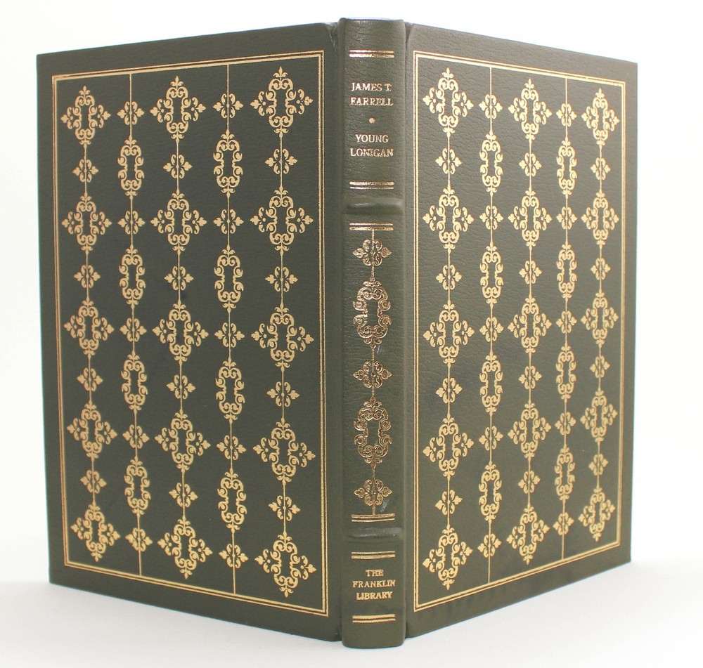 Young Lonigan By James T. Farrell Franklin Center, PA: The Franklin Library, 1979. Signed limited edition. Signed by James T. Farrell on the 3rd free endpaper with protective tissue guard laid-in. Bound in rich full leather - Gold gilt page edging, lettering, and graphics. - Raised bands on the spine – Silk moire endpapers - Archival quality paper - Satin ribbon book mark. 8vo – 6 x 9 ". 238 pp. Includes a special message by the author. Very good. No dust jacket as issued. Light rubbing to the gilt edges. Minor soiling to the boards. Fading to the edges of the silk moire endpapers. Otherwise the interior is clean, bright and solid. Please feel free to email me if you have any questions. Sorry, "Best Offers" are not taken. Be sure to take a look at my store for similar items. Good Luck & Happy Bidding!!! Payment is requested as soon as possible. Shipment is made when payment has cleared. We will gladly combine shipping on multiple items to save on shipping costs. 100% Satisfaction Guaranteed - If you are not satisfied with your purchase, please contact us within 30 days of receiving the item. We consider a sale final after 30 days. All items must be returned with their original materials to receive a refund. Shipping is non-refundable.
