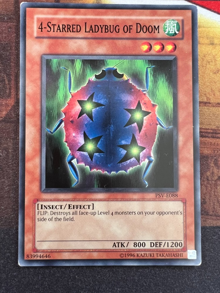 This listing is for Yu Gi Oh Effect Monster Cards, all Common Versions. Below is a list of the individual conditions of the cards. I've also included the scale I would rate cards on to help. More pictures can be provided so feel free to ask if you wish to. I also have other Yugioh card listings as well so please check them out! If there is more than one quantity of the same card it will be of the same quality but may have slight variations of wear to the picture shown. Mint - Near Mint - Excellent - Great - Good - Okay - Poor - Played - Heavily Played 4-Starred Ladybug of Doom PSV-E088, Great 4-Starred Ladybug of Doom YSYR-EN010, Excellent Amazoness Trainee BP01-EN213, Excellent An Owl of Luck PGD-073, Great Anti-Aircraft Flower DR2-EN077, Okay/Good Arcana Force 0 - The Fool LODT-EN008, Excellent Arcane Archer of the Forest DR2-EN141, Excellent Armed Ninja SDP-018, Near Mint Blade Knight YSKR-EN018, Excellent Blade Rabbit DR3-EN138, Good Breaker the Magical Warrior YSYR-EN015, Great/Excellent Bubonic Vermin PSV-E057, Excellent Burner, Dragon Ruler of Sparks LTGY-EN097, Near Mint Buster Blader BP01-EN117, Near Mint Buster Blader YSYR-EN009, Great Buten GAOV-EN095, Excellent Catapult Turtle DPYG-EN006, Near Mint Chainsaw Insect BP01-EN142, Excellent Chaos Necromancer DR2-EN017, Excellent Charm of Shabti DR1-EN022, Good Cobraman Sakuzy PGD-032, Excellent Copy Plant CSOC-EN005, Excellent Copy Plant CSOC-EN005, Good Crimson Sentry LON-033, Excellent Crystal Beast Amber Mammoth LCGX-EN159, Near Mint Crystal Beast Cobalt Eagle LCGX-EN160, Near Mint Crystal Beast Emerald Tortoise LCGX-EN157, Excellent Cyberdark Edge DP04-EN008, Okay/Good Dark Dust Spirit PGD-017, Okay Dark Magician Girl YSYR-EN011, Excellent Dark Resonator BP01-EN203, Excellent Des Frog CRV-EN026, Excellent Dharc the Dark Charmer TDGS-EN026, Excellent Don Turtle DR2-EN072, Good Dreamsprite LON-073, Okay Drill Barnacle GENF-EN007, Excellent Drill Bug PSV-078, Excellent Dummy Golem DR3-EN196, Good Electric Virus YSYR-EN022, Excellent Elephant Statue of Disaster TU08-EN013, Excellent Elephant Statue of Disaster TU08-EN013, Good Emissary of the Oasis DR2-EN196, Good Exodia the Forbidden One LDK2-ENY04, Near Mint Fairy Guardian LON-039, Excellent Fire Trooper PTDN-EN013, Good Gagaga Magician BP01-EN218, Excellent Giant Germ DB1-EN050, Okay Gigantic Cephalotus CSOC-EN025, Excellent Gilasaurus BP01-EN177, Excellent Golem Dragon TU06-EN019, Excellent Golem Dragon TU06-EN019, Great Granadora DR2-EN030, Good Gren Maju Da Eiza IOC-024, Okay Gren Maju Da Eiza DR2-EN024, Played/Poor Grinder Golem LCGX-EN196, Near Mint Guard Dog EOJ-EN024, Good Guardian Sphinx BP01-EN130, Excellent Gyaku-Gire Panda DCR-021, Excellent Herald of Orange Light TU07-EN017, Great Herald of Orange Light TU07-EN017, Good/Great Horus the Black Flame Dragon LV4 YSKR-EN019, Excellent Horus the Black Flame Dragon LV6 YSKR-EN020, Excellent Hyena AP01-EN014, Great Hysteric Fairy LON-042, Excellent Jetroid CRV-EN011, Excellent Jigen Bakudan MRL-074, Excellent Jigen Bakudan MRL-E074, Excellent Jigen Bakudan SRL-074, Excellent KA-2 Des Scissors DR2-EN131, Good Karate Man SDJ-013, Great/Excellent King of the Skull Servants TLM-EN032, Good - Minor crease top right corner Kycoo the Ghost Destroyer TU03-EN016, Good/Great Lady Assailant of Flames LON-E035, Played/Poor Leghul MRD-E031, Great Leghul MRD-EN031, Near Mint Lyna the Light Charmer TSHD-EN024, Good/Great Magician's Valkyria YSYR-EN023, Great Maiden of the Aqua PGD-008, Great Maiden of the Aqua PGD-008, Poor Makyura the Destructor BP01-EN180, Excellent Man-Eater Bug SDp-015, Near Mint Marshmallon LDK2-ENY20, Great Mezuki LCGX-EN200, Near Mint Milus Radiant SDJ-014, Great Morphtronic Celfon CSOC-EN006, Great Muka Muka BP01-EN174, Near Mint Mushroom Man 2 MRD-114, Excellent Mushroom Man MRD-E114, Good Needle Worm DB2-EN102, Good/Great Numen Erat Testudo ORCS-EN038, Good/Great Old Vindictive Magician YSYR-EN014, Excellent Ooguchi MRD-E032, Excellent Phantom Magician GENF-EN092, Great Phantom of Chaos BP01-EN196, Excellent Pitch Dark Dragon DR1-EN063, Great/Excellent Protector with Eyes of Blue LDK2-ENK07, Great Pumpking the King of Ghosts MRD-E079, Excellent Reactan, Dragon Ruler of Pebbles LTGY-EN095, Excellent Sasuke Samurai #3 DR2-EN011, Okay Senju of the Thousand Hands TP4-012, Excellent Shadow Ghoul DB2-EN055, Good Slate Warrior BP01-EN121, Excellent Sonic Bird MRL-E093, Excellent Soul-Absorbing Bone Tower DR2-EN123, Okay Soul of Purity and Light LON-066, Near Mint Soul of Purity and Light LON-066, Good Spirit of the Six Samurai TU05-EN014, Good/Great Spirit Reaper SD2-EN006, Great Stream, Dragon Ruler of Droplets LTGY-EN096, Excellent Super Conductor Tyranno BP01-EN013, Excellent Supply LON-075, Excellent Sword Hunter PSV-E077, Excellent T.G. Warwolf EXVC-EN020, Excellent Tainted Wisdom MRD-E081, Excellent The Bistro Butcher MRD-E108, Near Mint The Forgiving Maiden LON-044, Poor The Great Emperor Penguin GENF-EN037, Excellent The Kick Man DR2-EN124, Okay The Six Samurai - Kamon LCGX-EN228, Near Mint The Six Samurai - Yaichi LCGX-EN227, Excellent The Unfriendly Amazon LON-031, Excellent The Unfriendly Amazon LON-031, Great The Unhappy Girl DR2-EN122, Good Thunder King Rai-Oh LCGX-EN203, Near Mint Toon Gemini Elf BP01-EN128, Near Mint Twin-Headed Behemoth DB2-EN174, Okay Uni-Zombie OP03-EN025, Excellent Valkyrian Knight LDK2-ENJ21, Great Vampire Lady DR2-EN125, Good Vanity's Ruler CP08-EN018, Excellent Venom Boa TAEV-EN016, Excellent Vortex Trooper BP01-EN199, Excellent Wall of Illusion SDY-E032, Excellent Wattpheasant DREV-EN026, Excellent White Magician Pikeru DR2-EN145, Okay/Good Winged Kuriboh LV10 LCGX-EN010, Excellent XYZ Remora CBLZ-EN011, Excellent Y-Dragon Head DPKB-EN011, Excellent Yaksha BP01-EN163, Excellent Yata-Garasu DB2-EN177, Great Zombyra the Dark BP01-EN120, Excellent