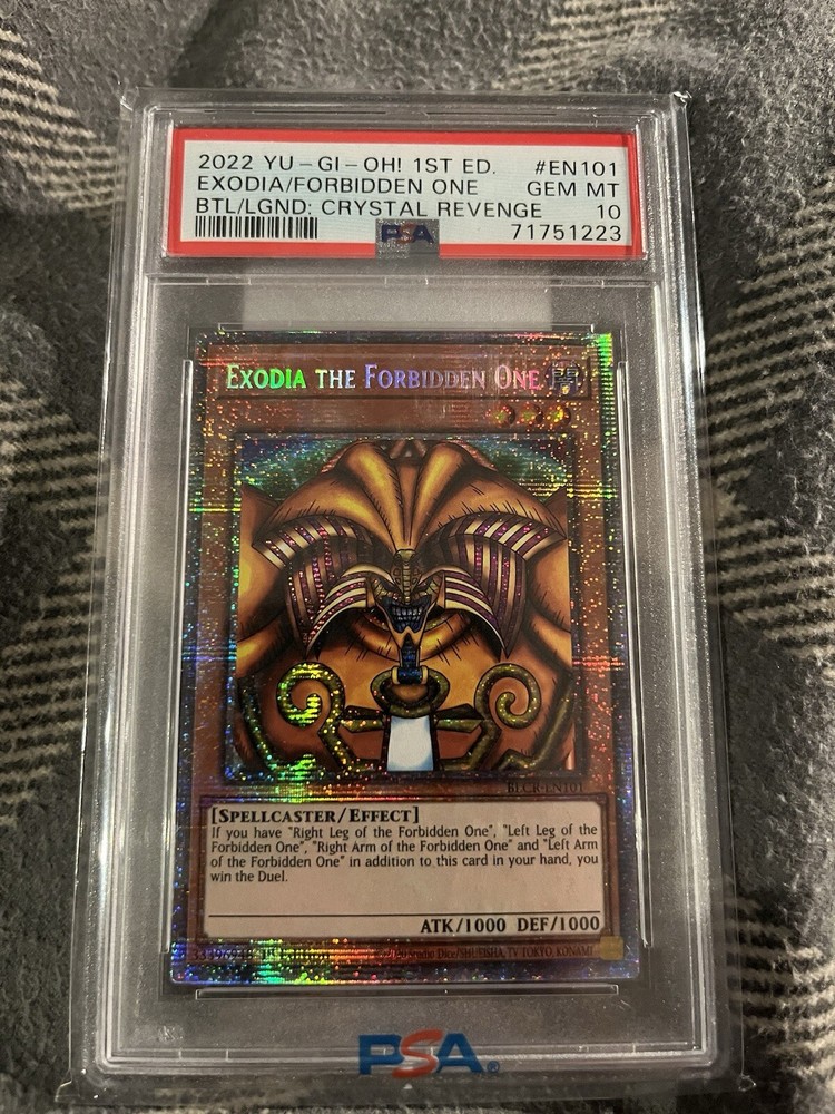 This rare and highly sought-after card is a must-have for any serious Yu-Gi-Oh! collector. Featuring the iconic Exodia the Forbidden One, this card is a 1st Edition Starlight Rare with a PSA 10 rating. It is made of high-quality card stock and has a standard size for easy storage and display. The card is from the Yu-Gi-Oh! TCG game and is an Effect type with the card number BLCR-EN101. It features the character Crystal and is manufactured by Konami. This card is perfect for players and collectors alike, and is sure to be a valuable addition to any collection.