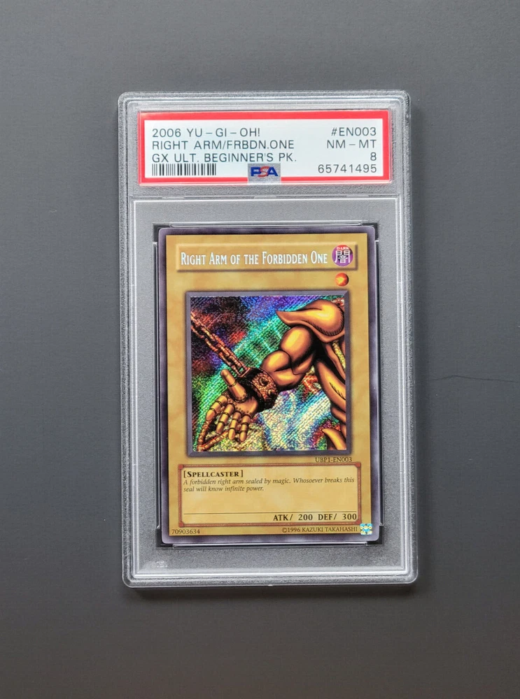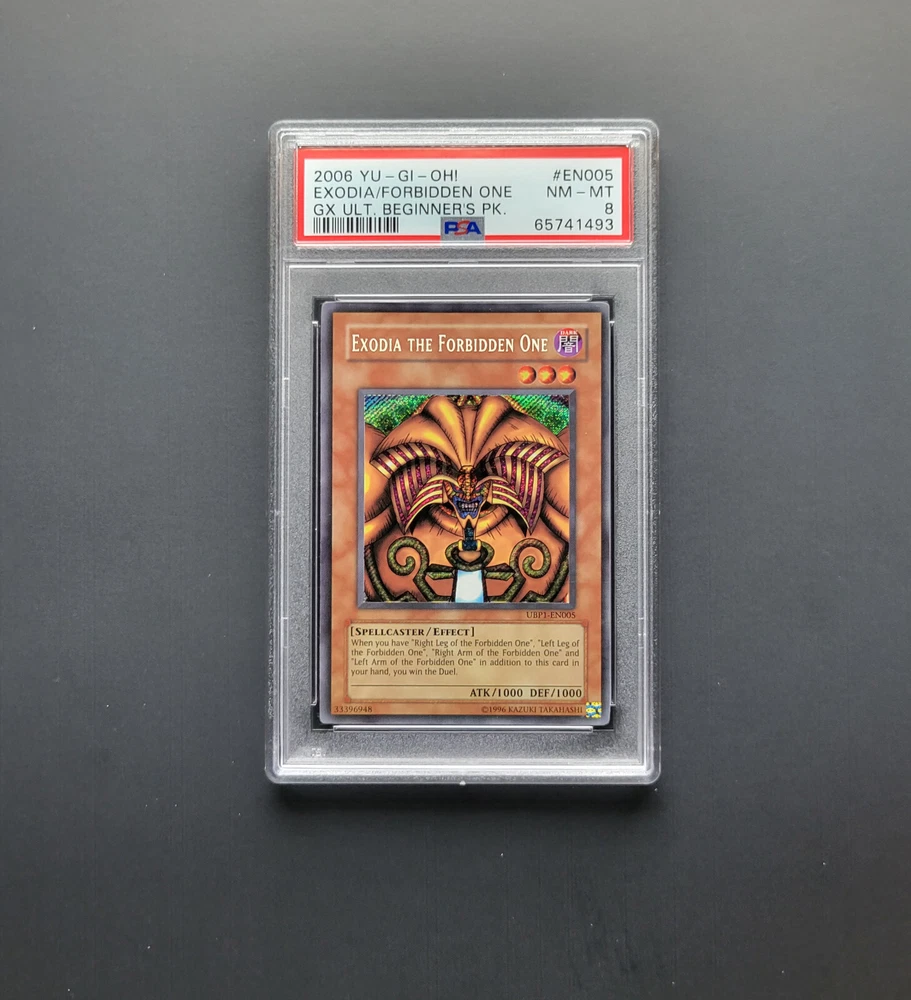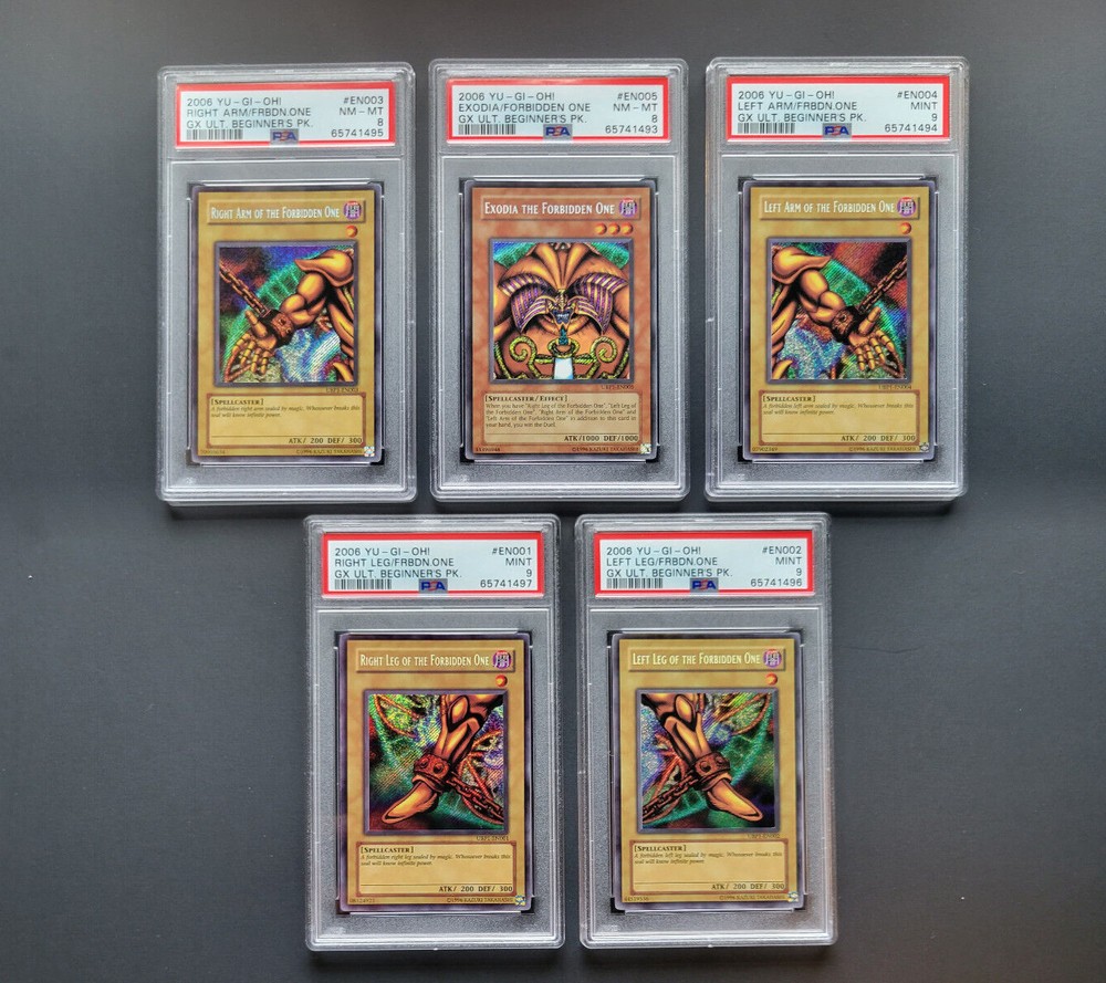 Yugioh 2006 GX Ultimate Beginner’s Pack Exodia Complete Set PSA 8 9 Secret Rare EN001 - Right Leg of the Forbidden One PSA 9 EN002 - Left Leg of the Forbidden One PSA 9 EN003 - Right Arm of the Forbidden One PSA 8 EN004 - Left Arm of the Forbidden One PSA 9 EN005 - Exodia the Forbidden One PSA 8