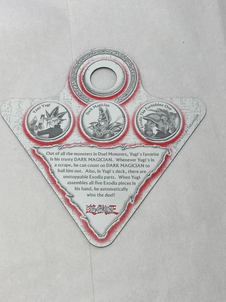 This rare Yu-Gi-Oh! TCG card features the powerful monster Exodia The Forbidden One as well as the iconic Dark Magician and Yami Yugi. With a holographic finish and 3D lenticular design, this vintage card from 1996 is sure to be a prized addition to any collection. The card is in near mint or better condition, making it an ideal choice for serious collectors and fans alike. Whether you're a longtime enthusiast of the game or simply looking for a unique and valuable piece to add to your collection, this Yu-Gi-Oh! trading card is not to be missed.
