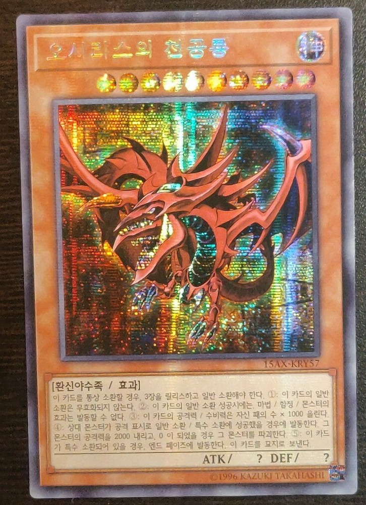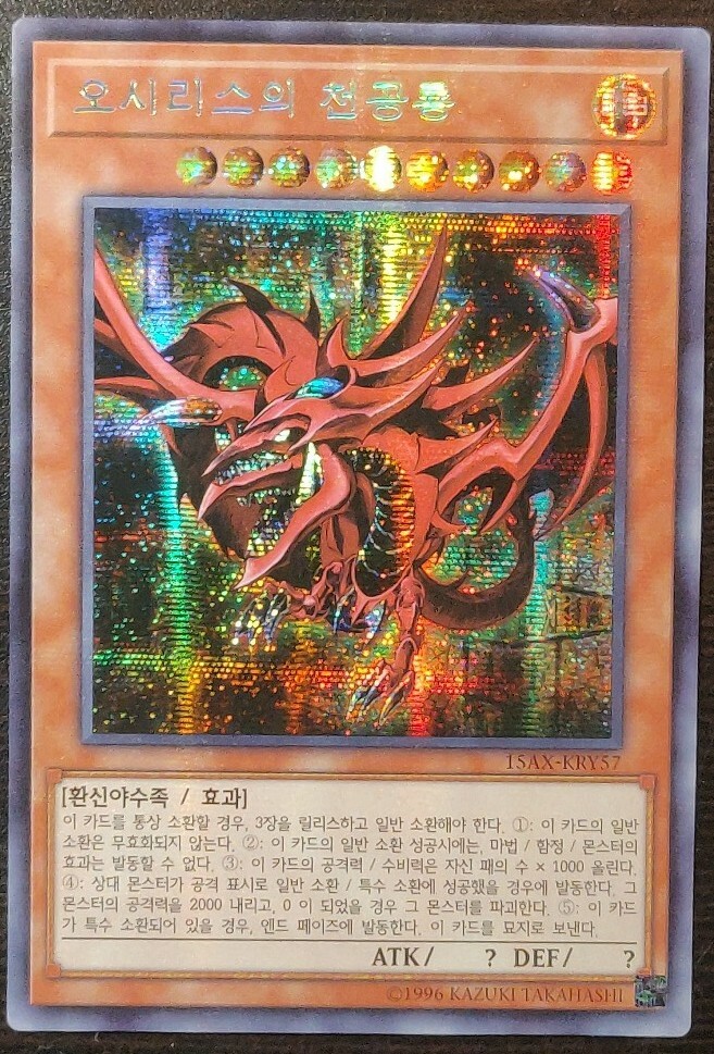 This Prismatic Secret Rare Slifer the Sky Dragon is breathtaking! The holographic effect pops with vibrant colors, making it a true collector's gem. The card arrived in flawless mint condition, just as pictured, and was securely packaged. Even though it's the Korean version, the artwork and rarity speak for themselves—an absolute must-have for any Yu-Gi-Oh! enthusiast. Authentic and stunning!