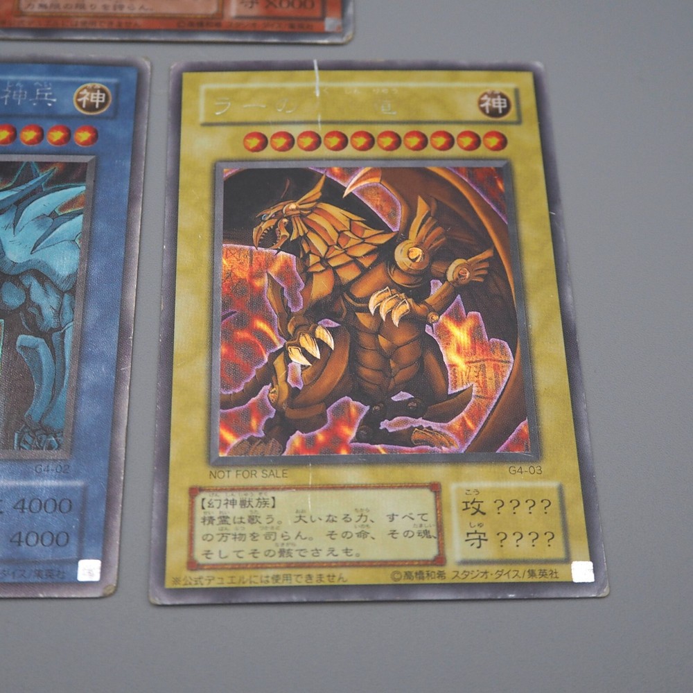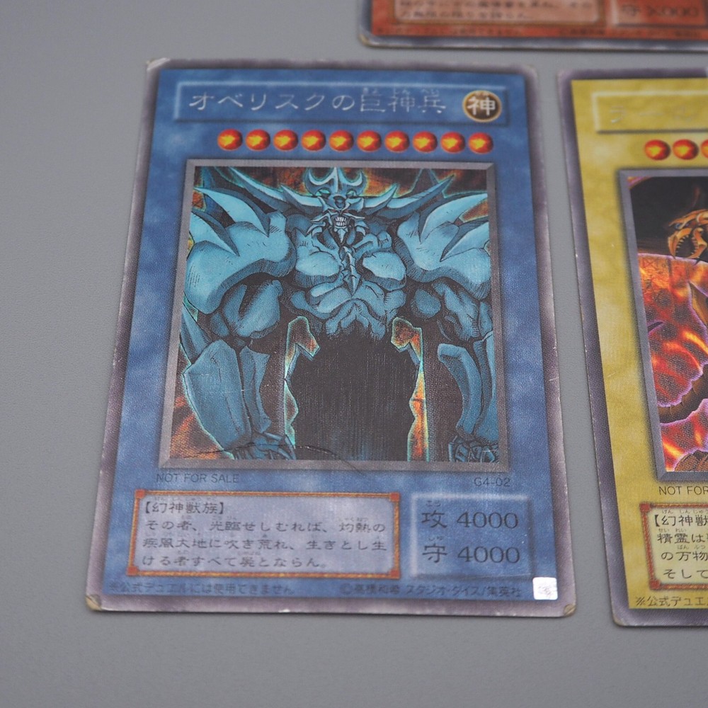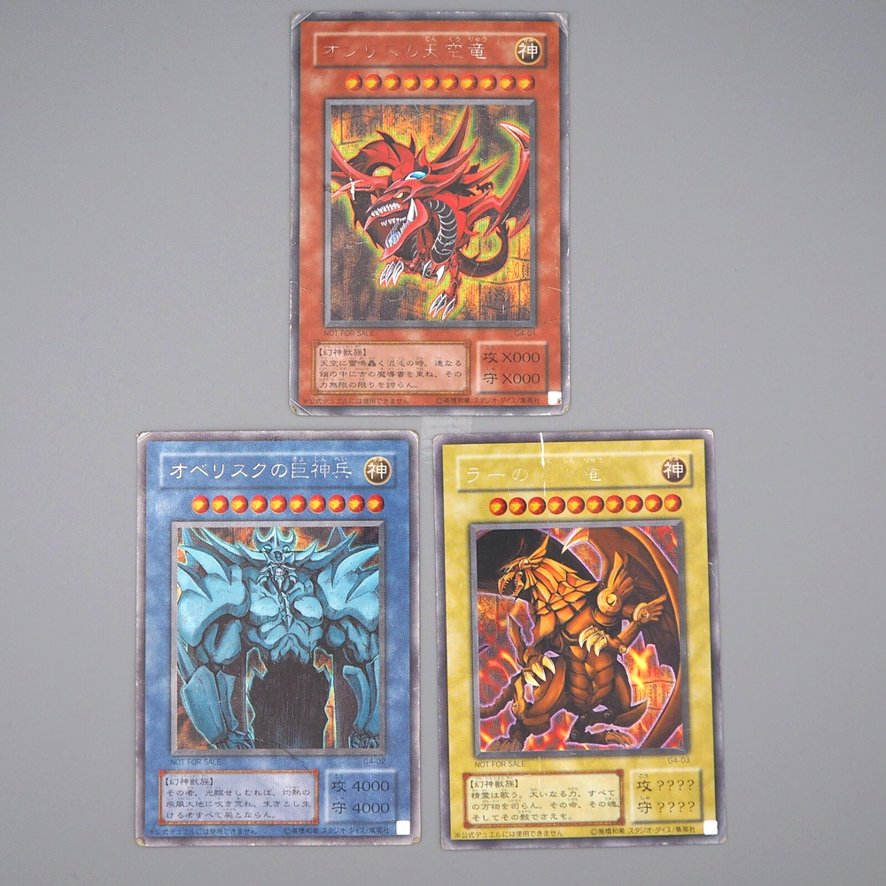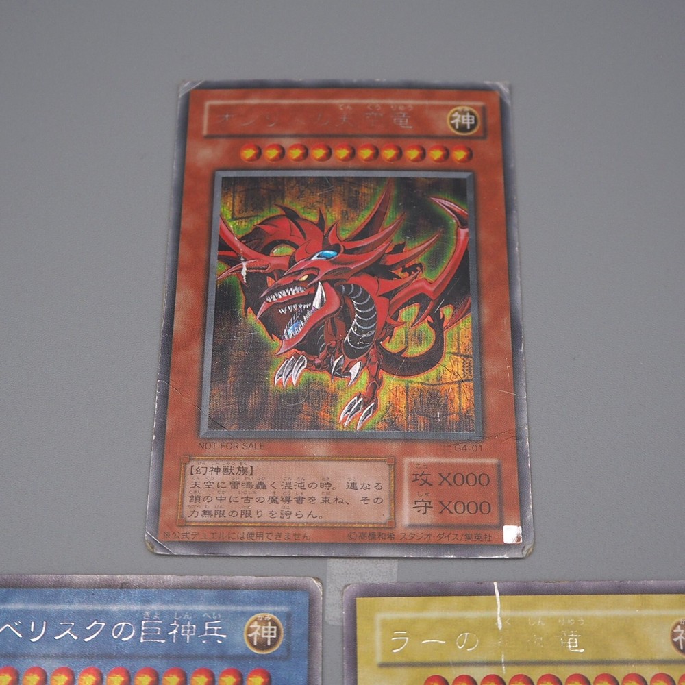 Yu-Gi-Oh Egyptian God Slifer Obelisk Ra G4-01 G4-02 G4-03 3set P Japanese n414 Description Condition : Poor (Please check the photos) [ MINT > Near MINT > Excellent > Very Good > Good > Poor ] Include : Egyptian God Slifer The Sky Dragon,Egyptian God Obelisk The Tormentor,Egyptian God The Winged Dragon of Ra Edition : G4-01, G4-02, G4-03 Rarity : Secret Parallel Rare Shipping [More Than Total $80+] Free Shipping!!! By Japan Post with Tracking Number. Shipping Fee is a flat rate of $6. Free conbined shipping for 2 or more!! International Buyers - Please Note: Import duties, taxes, and charges are not included in the item price or shipping cost. These charges are the buyer's responsibility. Please check with your country's customs office to determine what these additional costs will be prior to bidding or buying.