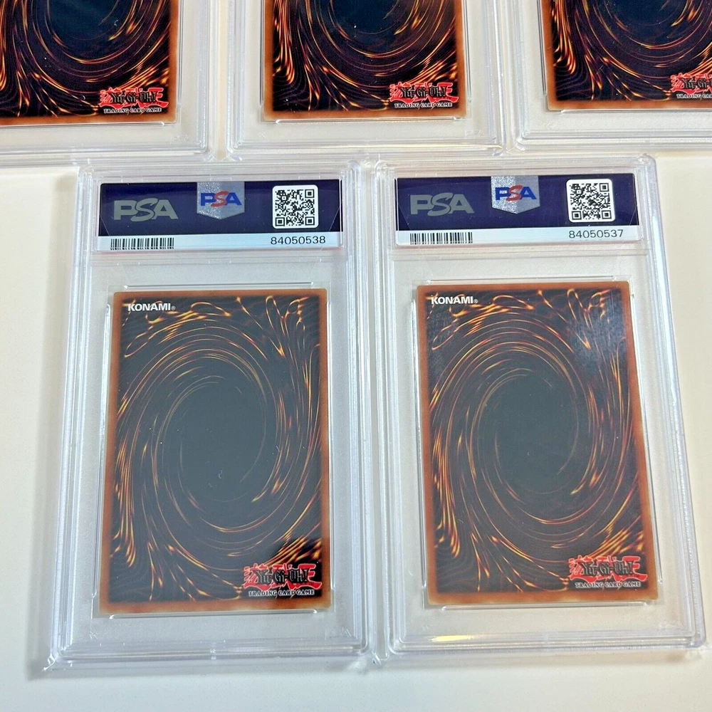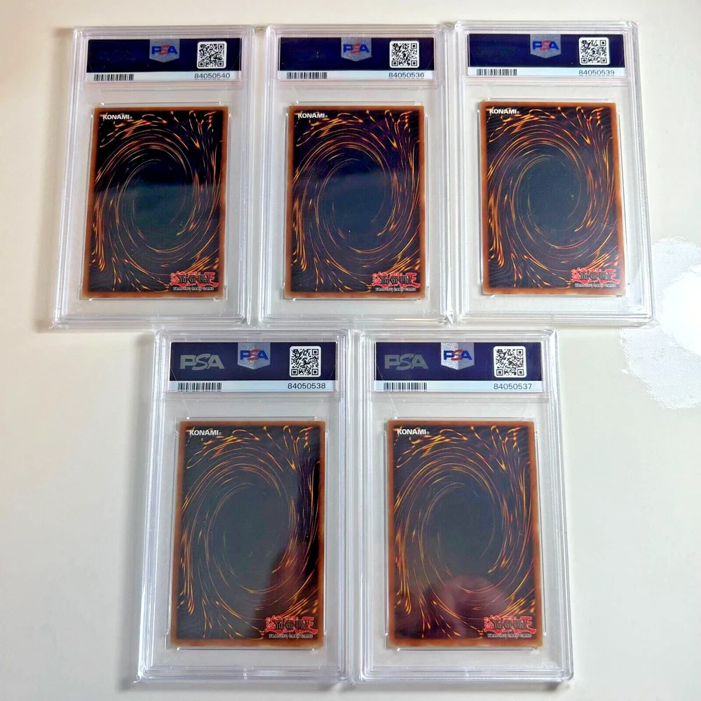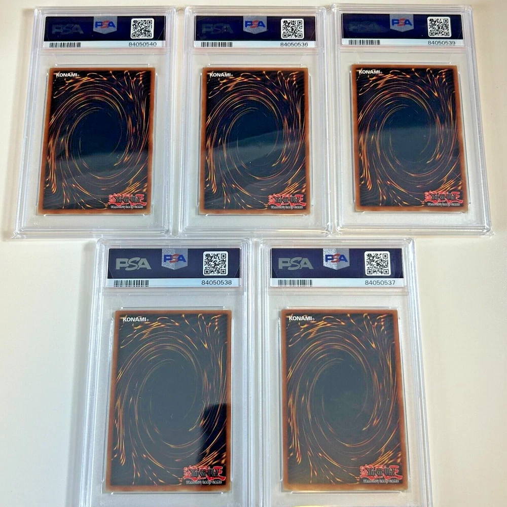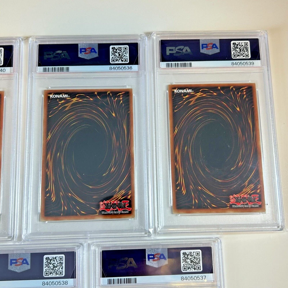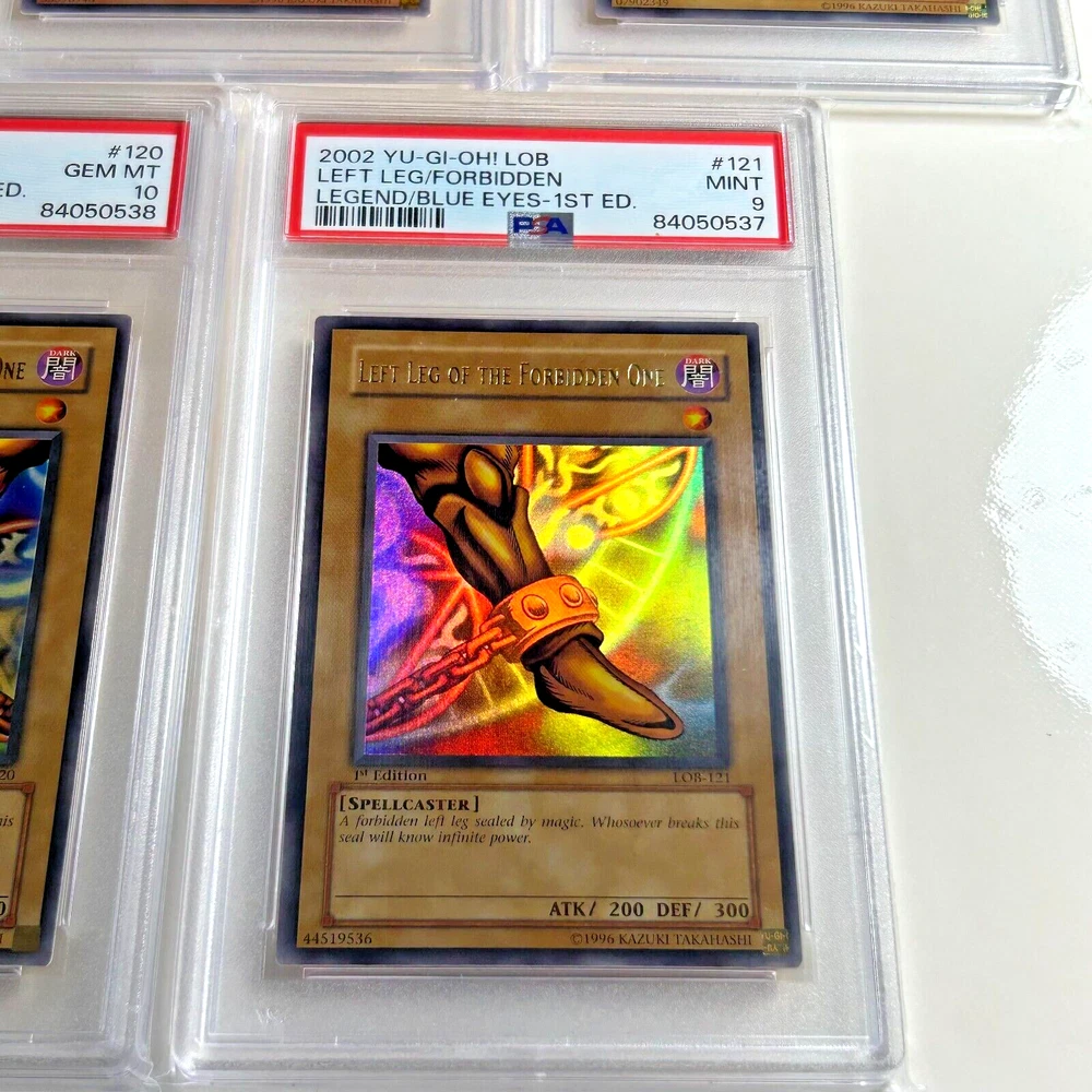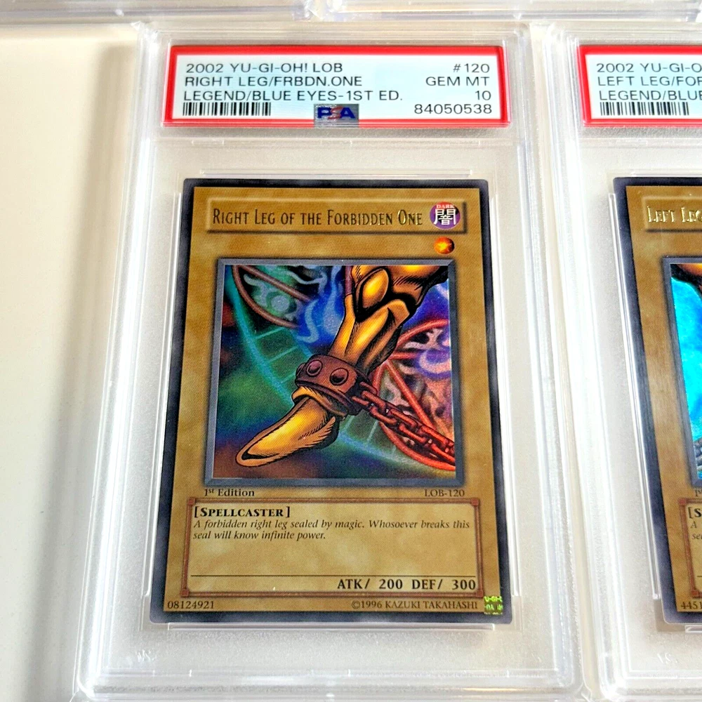 PRODUCT INFORMATION This listing is for the Full Exodia The Forbidden One 1st Edition Yu-Gi-Oh! card set , sequentially graded from PSA 84050536 - 84050540. Exodia The Forbidden One (Head) graded PSA 7 - POP 60 Left Arm Of The Forbidden One graded PSA 9 - POP 163 Right Arm Of The Forbidden One graded PSA 10 - POP 75 Left Leg Of The Forbidden One graded PSA 9 - POP 145 Left Leg Of The Forbidden One graded PSA 10 - POP 72 Please carefully check the condition of the item from the photos as we have a no refund/exchanges policy. We are not professional graders, but we will give an honest condition grade based on our experience. We will not accept returns or offer any partial refunds for card condition. We do our best to show all aspects of the card condition, you as the buyer must take the time to review all photos, item specifics and description to ensure these are the right card for you. If you need more photos, feel free to contact us. All our products are 100% authentic. SHIPPING & DELIVERY PSA Slab Shipping Rates: North America (Canada/USA): 3-10 Business Days (Canada Post 1x Shipping Box + Bubble - Tracked Registered Mail - CAD $100) International: 3-15 Business Days (Canada Post 1x Shipping Box + Bubble - Tracked Registered Mail - CAD $100.00 - Customs & Duties not included) We strive to send your order out within 1 BUSINESS DAY after payment confirmation is received. Please keep in mind that the post office is closed on all statutory holidays and weekends in Canada. Delivery is typically within 10-15 working days for most Countries. Additional days may incur for any delays, handling, or checks. If you do not receive your item within 3-4 weeks, please contact us and we will work towards a resolution for you. International buyer’s are responsible for ANY/ ALL import duties & taxes. ITEM PROTECTION GUARANTEE Your Card(s) will be protected in sleeves (for singles) Placed in or against a Card Saver 1 top-loader to avoid breaking (for singles) Wrapped again in a sealed Team Bag cover (including slabs) Sealed in bubble wrap envelope / shipping box for additional protection If you purchase multiple items, we will ship them together as much as possible ABOUT US We are a father-son duo based out of Toronto Canada and have been avid collectors since 1999. We hope you enjoy these cards as much as we do. DEAR CUSTOMERS If you were happy with your purchase, please leave us a positive feedback and introduce us to your friends! If you have any issues or concerns, please do not hesitate to contact us!