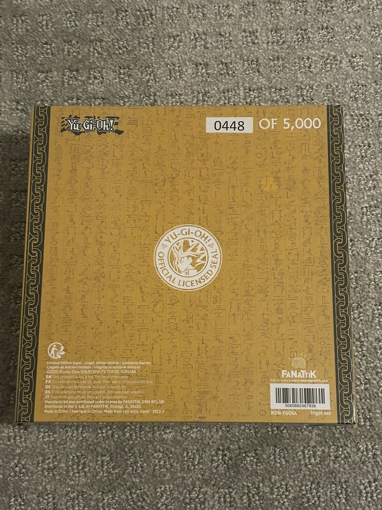 The Exodia The Forbidden One 24k Gold Plated Ingot Set is a rare limited edition with only 5000 pieces made. It features Yugi's iconic character and the famous Exodia in a beautiful gold finish that is crafted by Fanattik. The pictures are of the exact item you will receive. PM me any questions. Thank you!