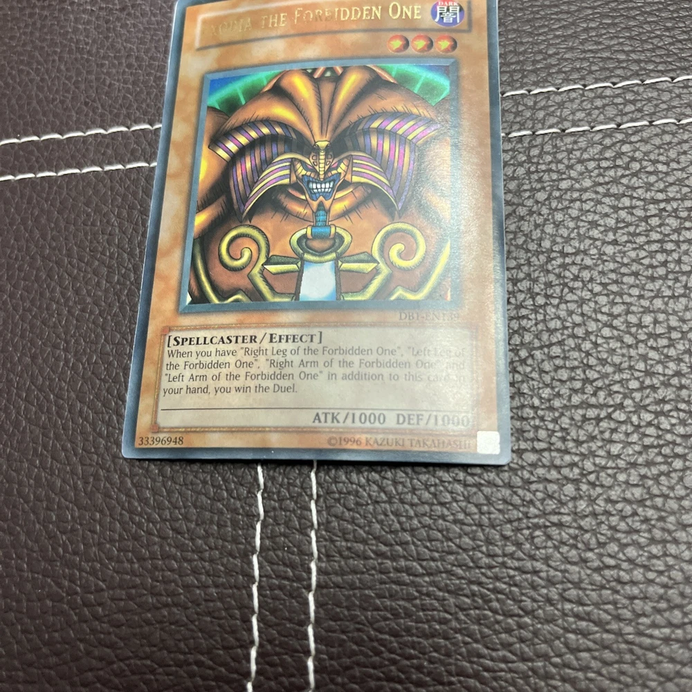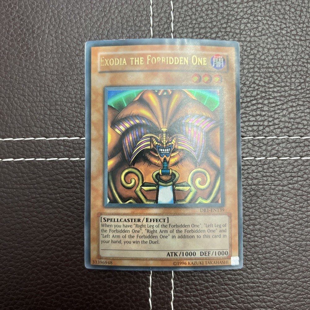 Yu-Gi-Oh! Exodia The Forbidden One - DB1-EN139 - Unlimited - HP Ultra Rare WHAT YOU SEE IS WHAT YOU GET!! THIS IS THE EXODIA REPRINT FROM DARK BEGINNINGS VOLUME 1!! THE CARD IS 100% AUTHENTIC AND IN HEAVILY PLAYED CONDITION!! BUY WITH CONFIDENCE!! STORED IN A PET-FREE, SMOKE-FREE HOME!! CONDITIONS GUIDE: Near Mint (NM): No apparent imperfections; possible light scratches on the surface. Light Play (LP): Moderate edgewear and/or multiple small bends/creases/dents. Heavy Play (HP): Major/multiple bends, creases, and/or dents throughout the card; si gnificantly damaged but playable in sleeve. SHIPPING!! - Orders will be shipped within 48 hours of receiving payment UNLESS it's a Saturday, Sunday, or a holiday since the post office is CLOSED. -Customers are responsible for all import duties and taxes that may apply in your country IF YOU NEED ANY MORE INFORMATION PLEASE MESSAGE ME! IF YOU NEED MORE PHOTOS OR WANT TO DICUSS A OFFER PLEASE MESSAGE ME! MAKE SURE TO CHECK OUT MY OTHER LISTINGS FOR ITEMS JUST LIKE THIS!