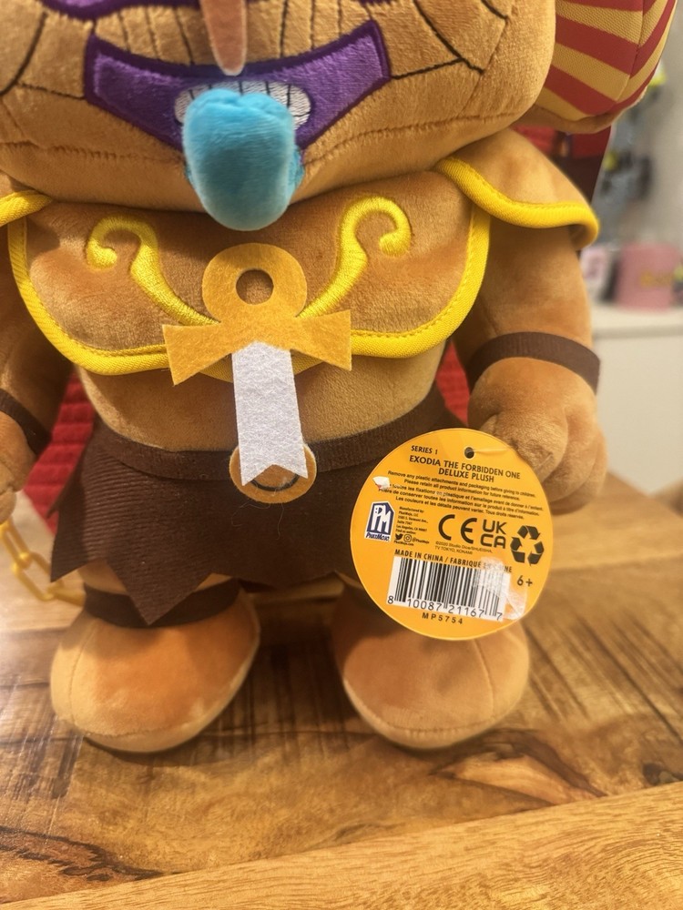 The Yu-Gi-Oh! Exodia The Forbidden One Exclusive 14" Inch Large Plush Figure is a limited edition collectible featuring the iconic character from the Yu-Gi-Oh franchise. Standing at 14 inches tall, this plush figure is made of high-quality material and showcases intricate details inspired by the Egyptian theme of the series. Perfect for fans of Yu-Gi-Oh and animation enthusiasts, this unique piece is a must-have for any collection and a great addition to any anime-themed display.