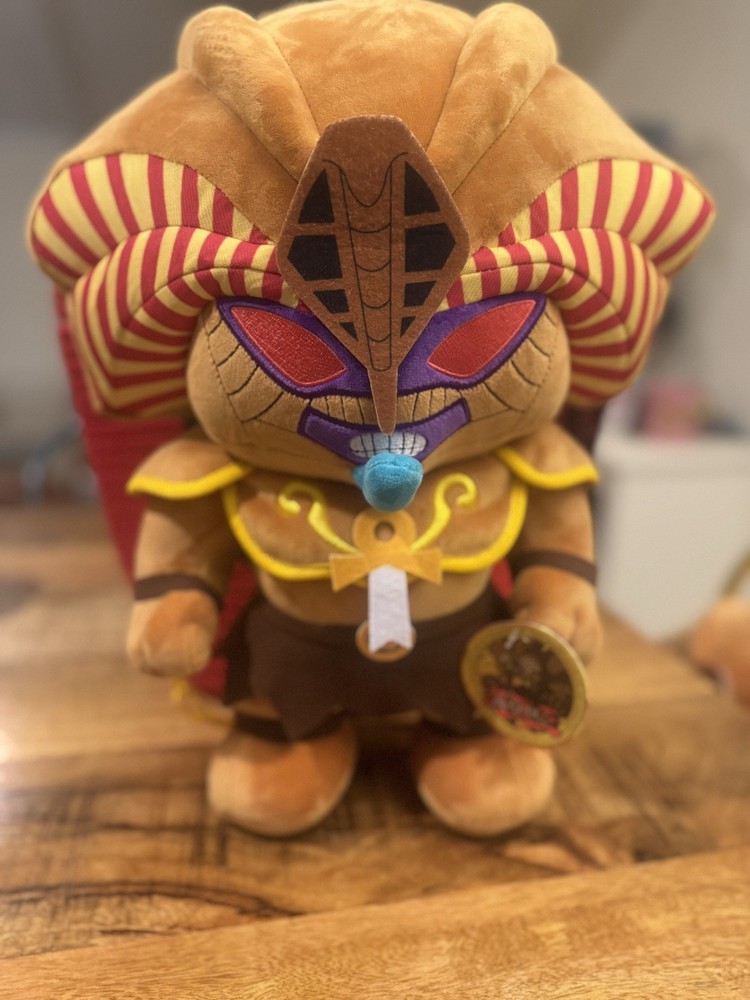 See pictures. The Yu-Gi-Oh! Exodia The Forbidden One Exclusive 14" Large Plush Figure is a limited edition collectible item featuring the iconic character from the Yu-Gi-Oh franchise. Standing at 14 inches tall, this plush figure exudes a brown color and is made from plush material, making it soft and huggable for fans of the series. With its Egyptian theme and being part of the 2021 Anime Expo event, this plush bear is a must-have for any Yu-Gi-Oh enthusiast looking to add a unique piece to their collection.