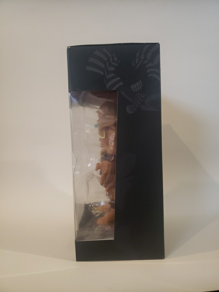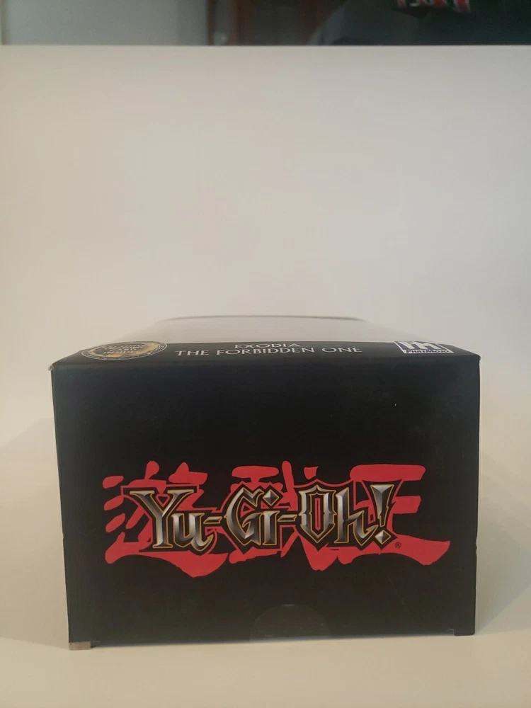 The "Yu-Gi-Oh Exodia The Forbidden One Figure Limited Edition 0695" is a gold-colored Egyptian God action figure manufactured by PhatMojo in 2020. It includes an exclusive trading card and is part of the Yu-Gi-Oh! franchise. The figure is a model animator doll featuring the character Exodia from the Yu-Gi-Oh! TV show, designed for ages 14 and up. It is an original licensed reproduction with exclusive features, made of plastic in China.